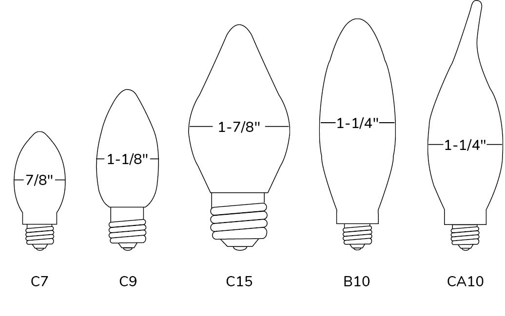 Numbers in each code refer to the bulb’s diameter in eighths of an inch.