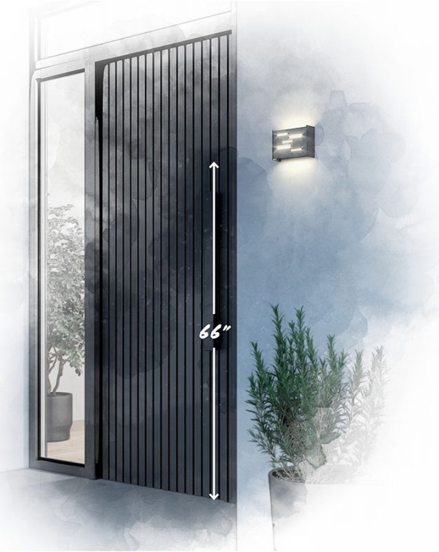 When placing your wall-mounted front porch lighting, be sure to place it at least 66” above the ground for best results. When choosing a lighting fixture, you should choose proportions that are at about ¼ the size of your doorway.