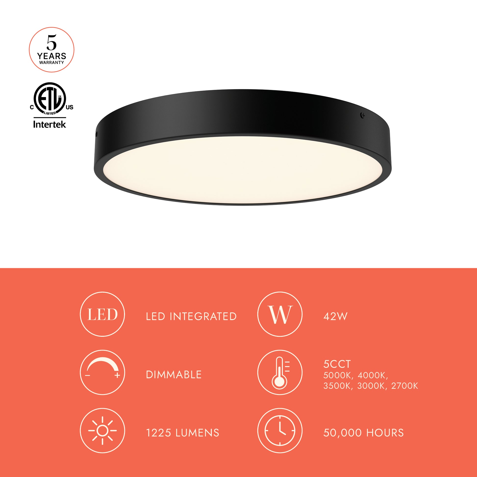 - Integrated LED with Selectable Color Temperature Options