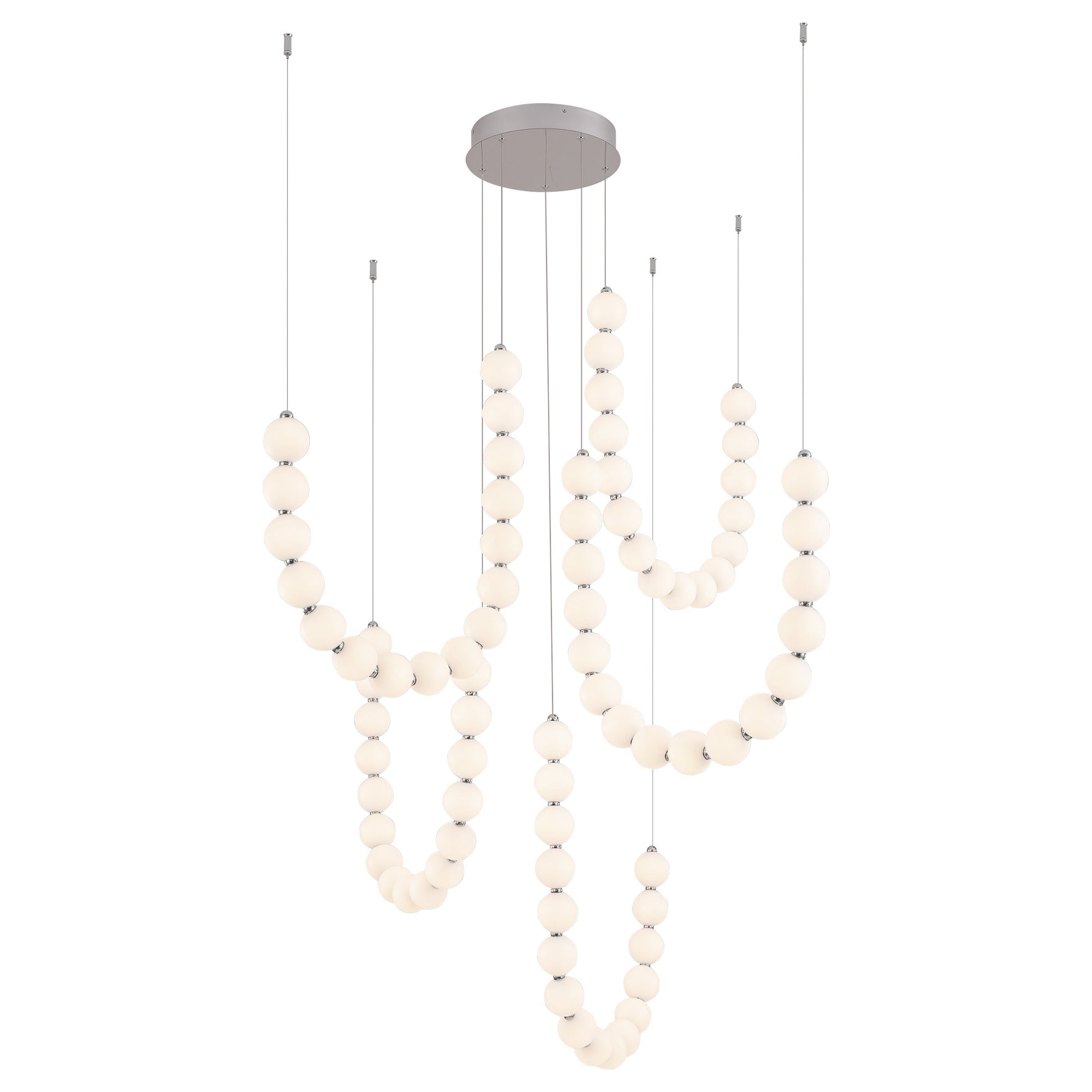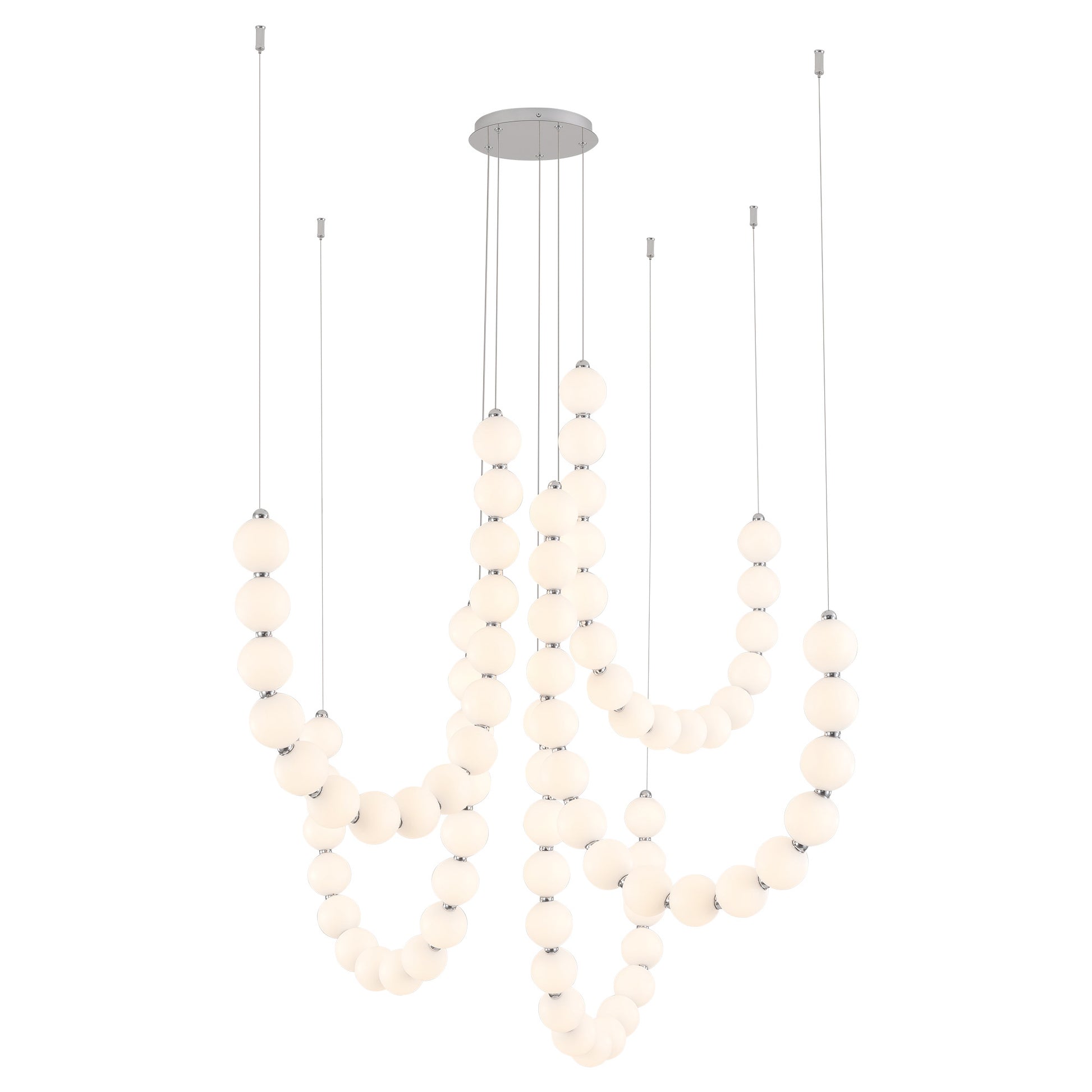 Inspired by the luxe pearls discovered by the sea, the Akoya collection is an instant classic. With unlimited amounts of configurations, this collection is perfect for any space in need of an awe-inspiring statement piece. Beads of illumination twirl in any way you prefer on a subtle frosted polished chrome frame. Now available in new sizes and canopy options.