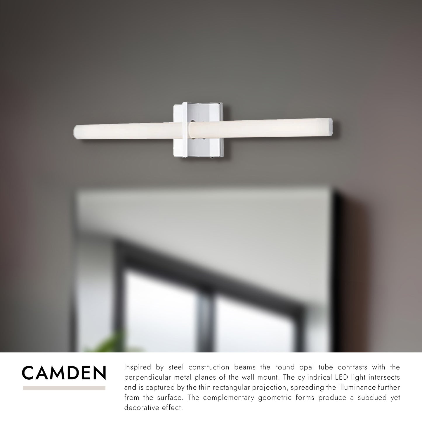 Inspired by steel construction beams the round opal tube contrasts with the perpendicular metal planes of the wall mount. The cylindrical LED light intersects and is captured by the thin rectangular projection, spreading the illuminance further from the surface. The complementary geometric forms produce a subdued yet decorative effect.