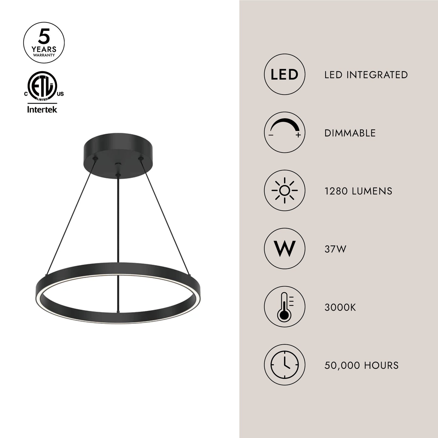 - Integrated LED with 3000K Warm White Color Temperature