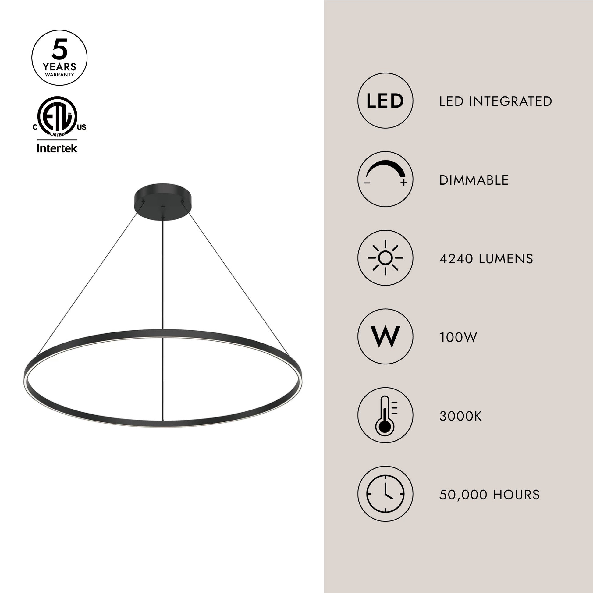 - Integrated LED with 3000K Warm White Color Temperature