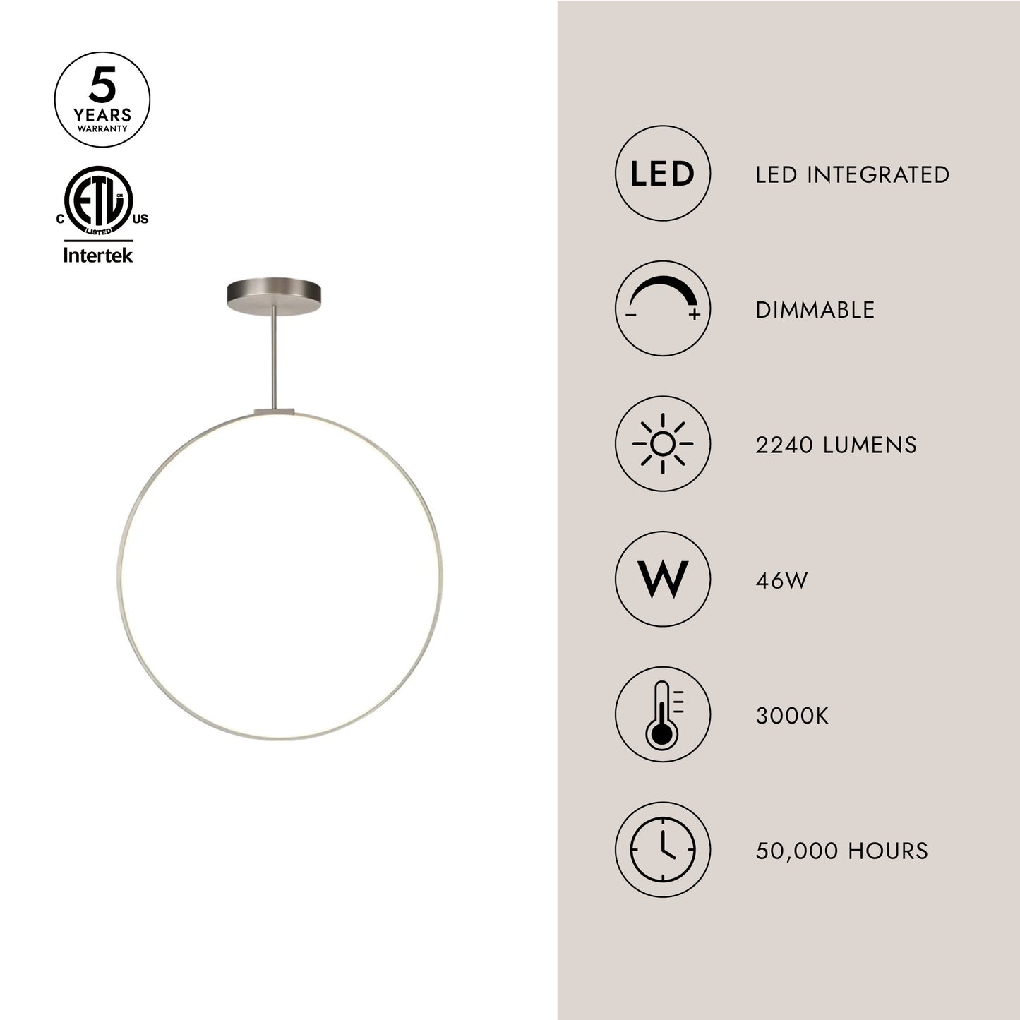 - Integrated LED with 3000K Warm White Color Temperature