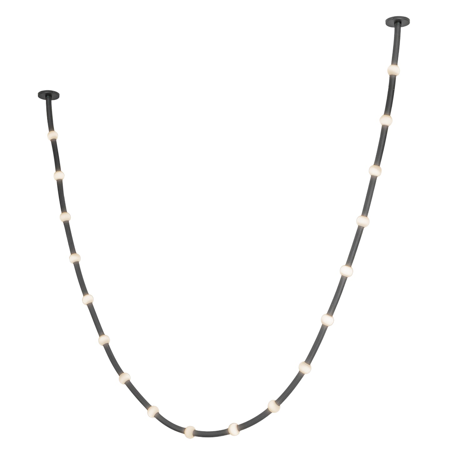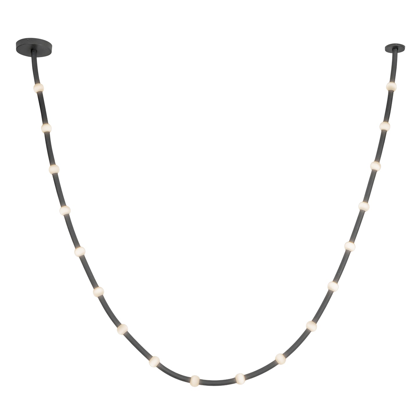 The Corda collection by Branch Creative redefines modern lighting with its adjustable fabric rope adorned with illuminated petite opal glass globes. Perfect for layering in various sizes, it transforms into an eye-catching chandelier suited to any space. Offered with standard junction box covers or remote driver options, Corda delivers versatility and a strikingly unique aesthetic.