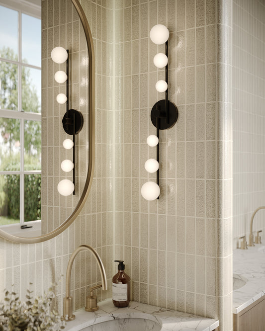 Cypress's shape expands and contracts to suit your space’s needs. Each “branch” of the Cypress collection adjusts to lengthen or collapse, creating a customized look. Atop each arm sits three growing Matte Opal glass globes stretching outwards to create depth and emphasis.