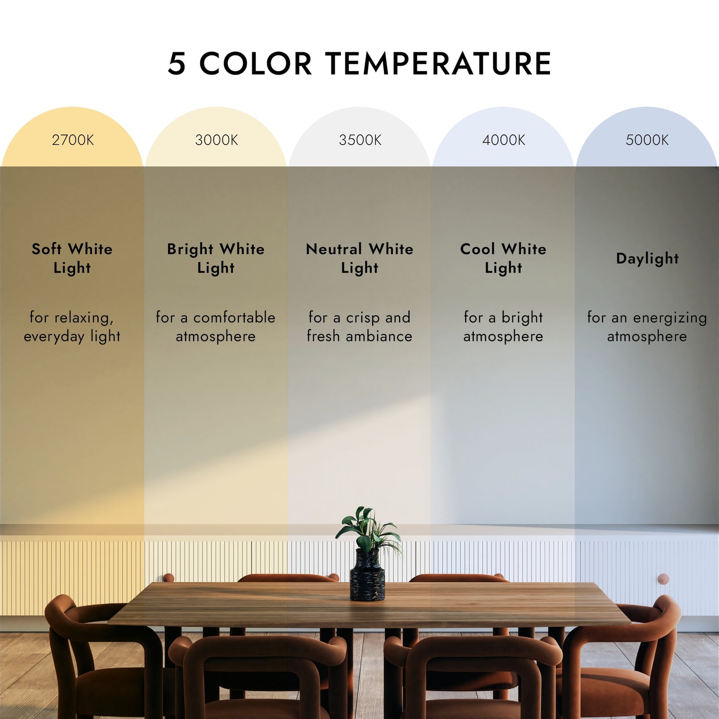 | Color Temperature | 5000K, 4000K, 3500K, 3000K, 2700K, 5CCT |