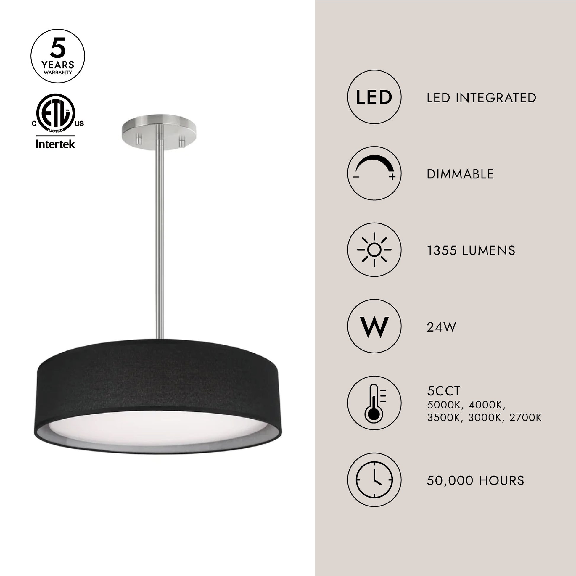 - Integrated LED with 3000K Warm White Color Temperature