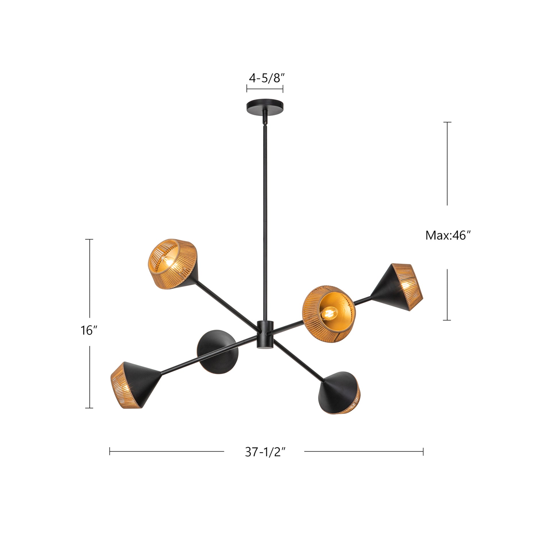 The playful geometric shapes in the Daphne collection offer a Japanese-inspired twist on mid-century design, presenting a symphony of angles, lines, and dimension. Each piece is crafted with metal bodies and natural rope accents not only illuminate your outdoor or indoor space, but also to serve as a striking centerpiece.