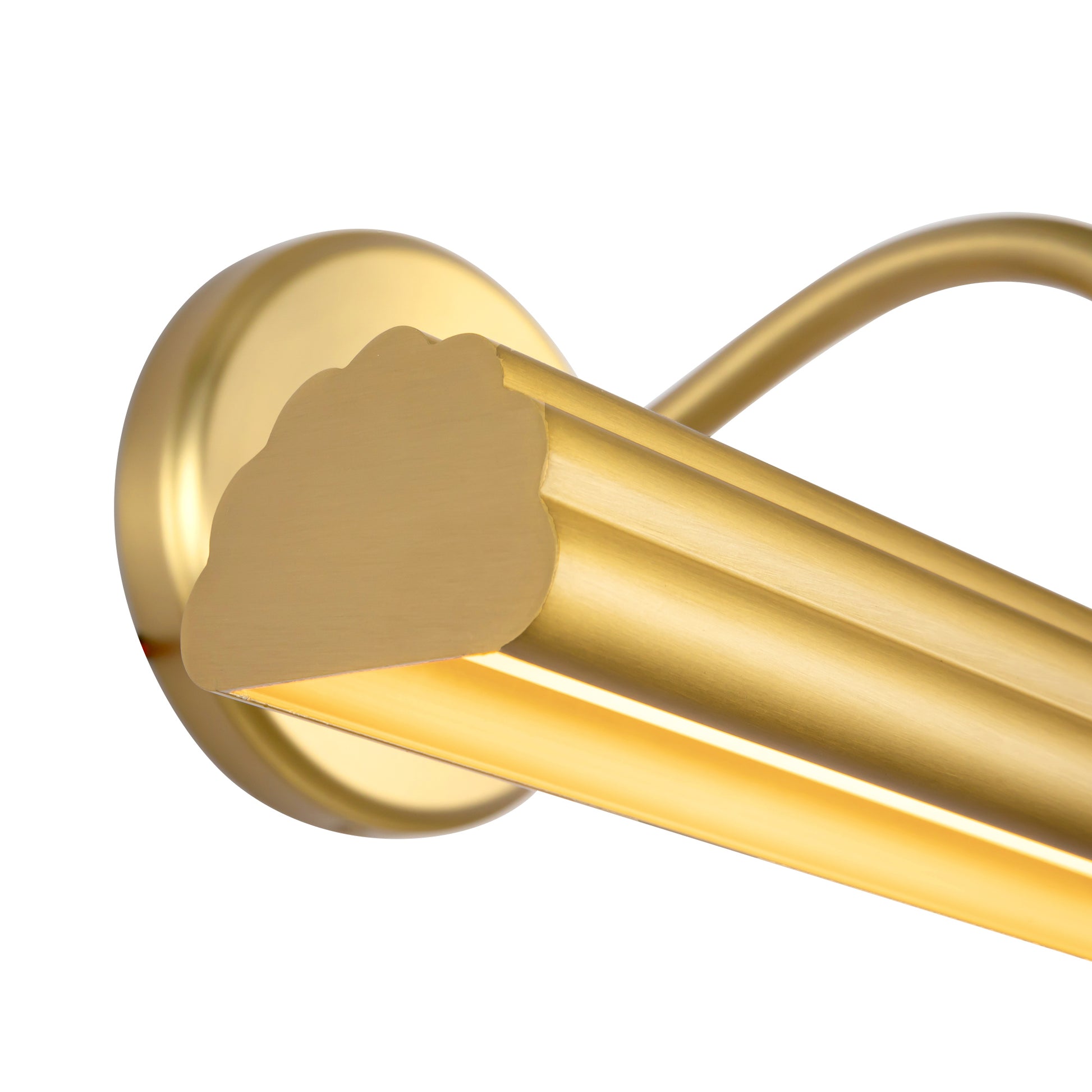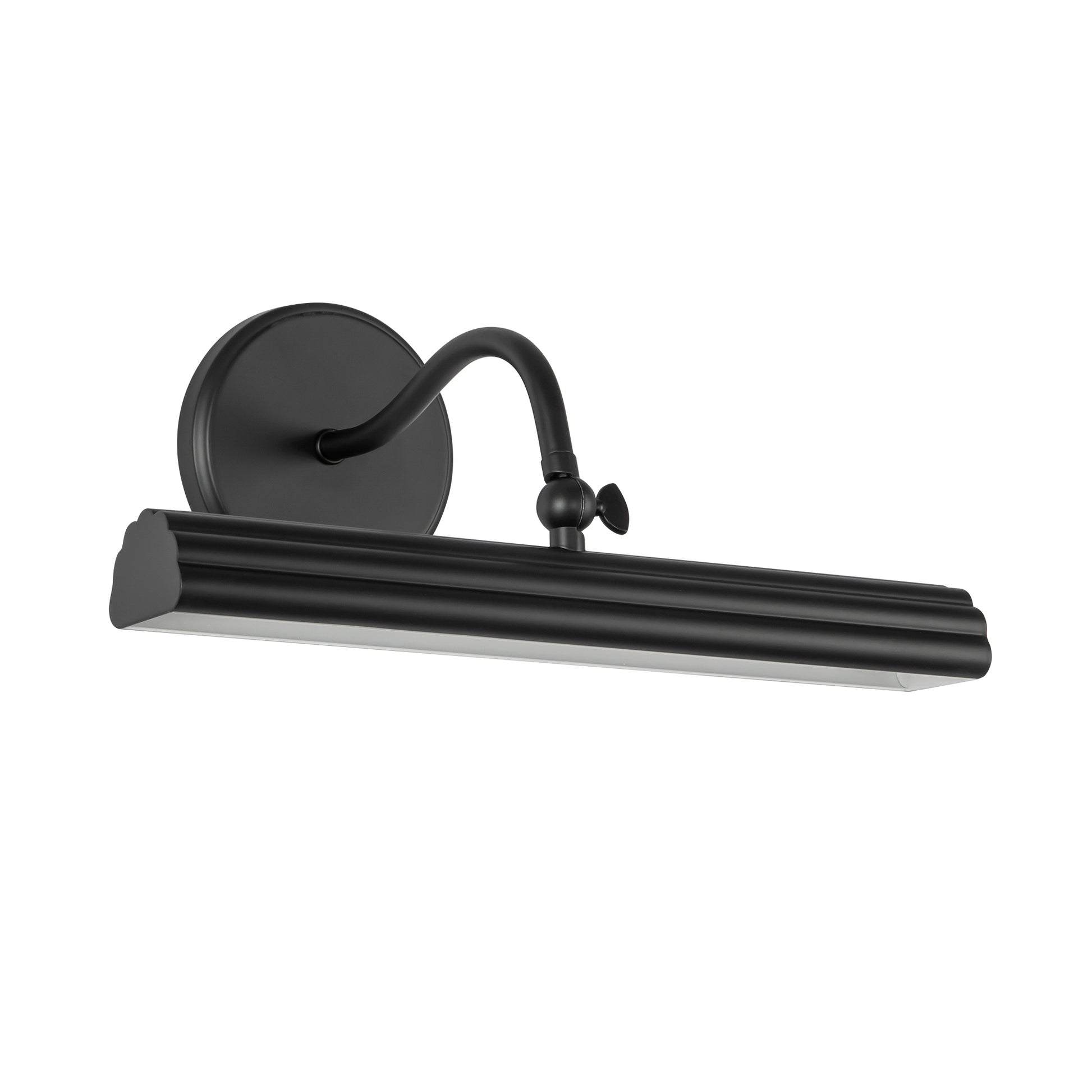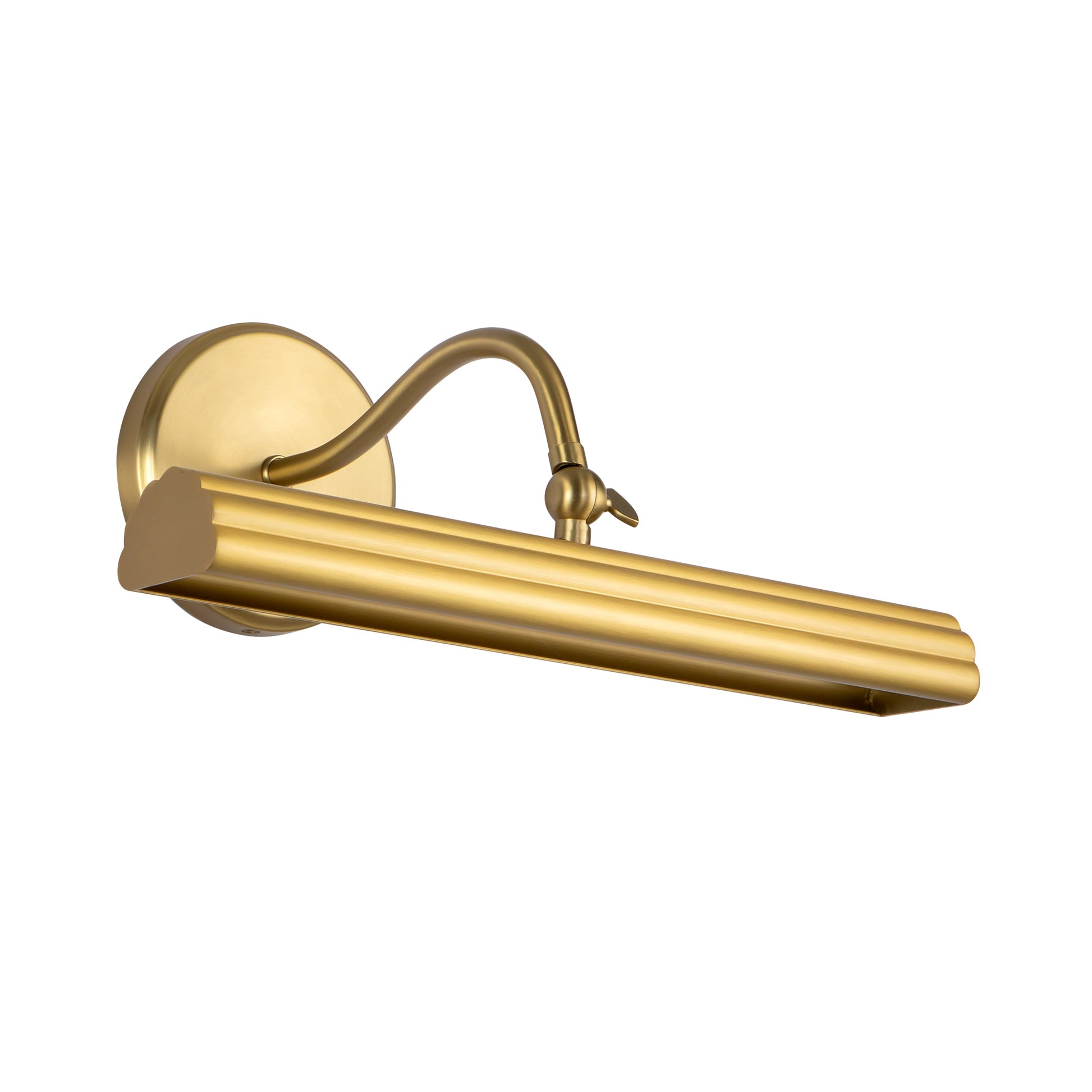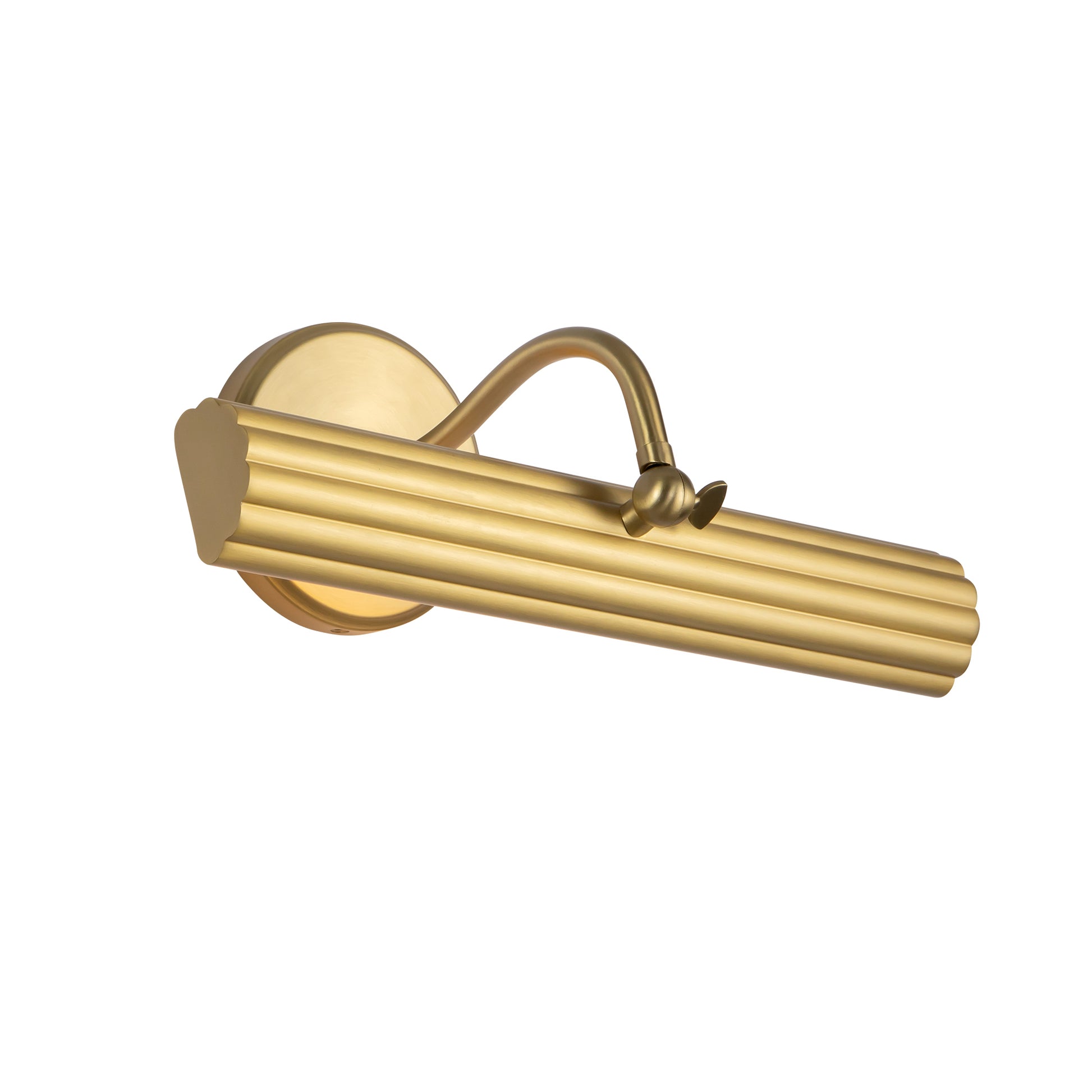 - The Dottie Adjustable Picture Light features a curved half-circle profile with ribbed metal detailing for modern elegance.