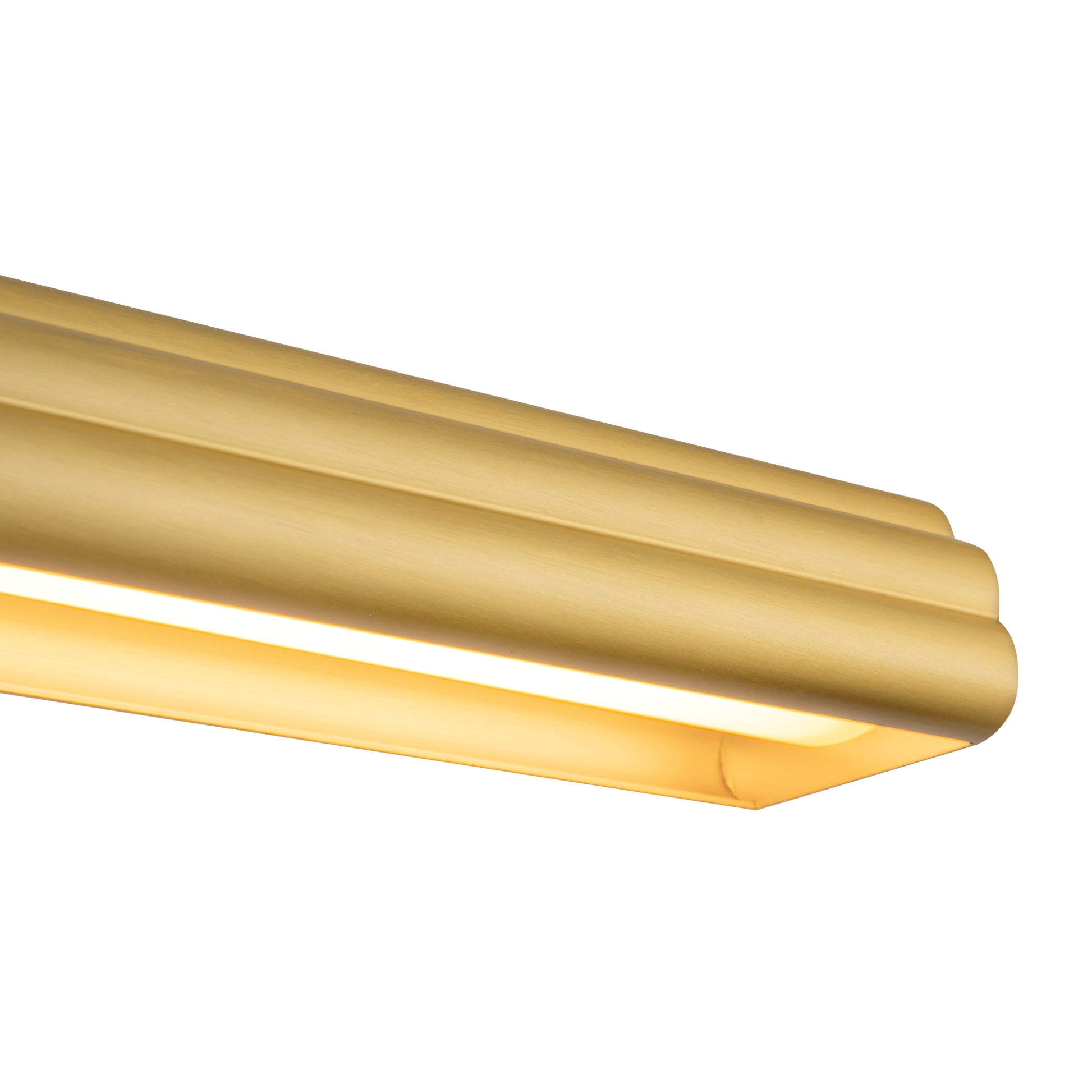 - The Dottie Adjustable Picture Light features a curved half-circle profile with ribbed metal detailing for modern elegance.