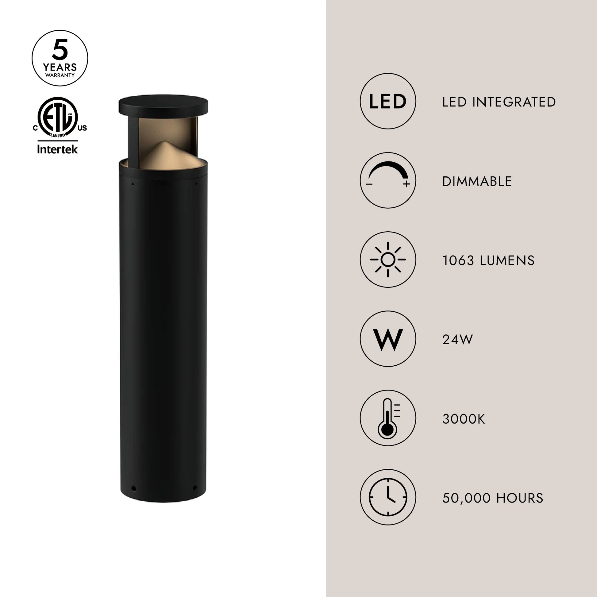 - Integrated LED with 3000K Warm White Color Temperature