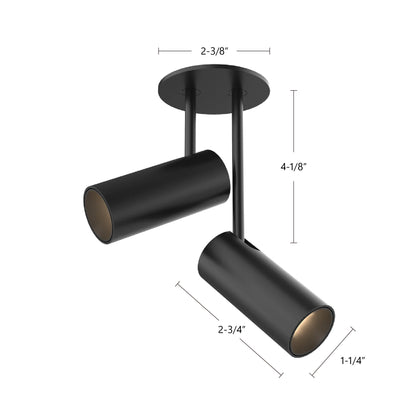 Recessed within the minute barrel of the quintessential adjustable lamp is a spot light assembly applied across the Downey line. By utilizing slim LED boards and recessed driver. the canopy scale is reduced to a fundamental trim plate and minimizes the visual footprint of the functional fixtures. Available in two petite cylindrical sizes and a single or multi-light configuration.