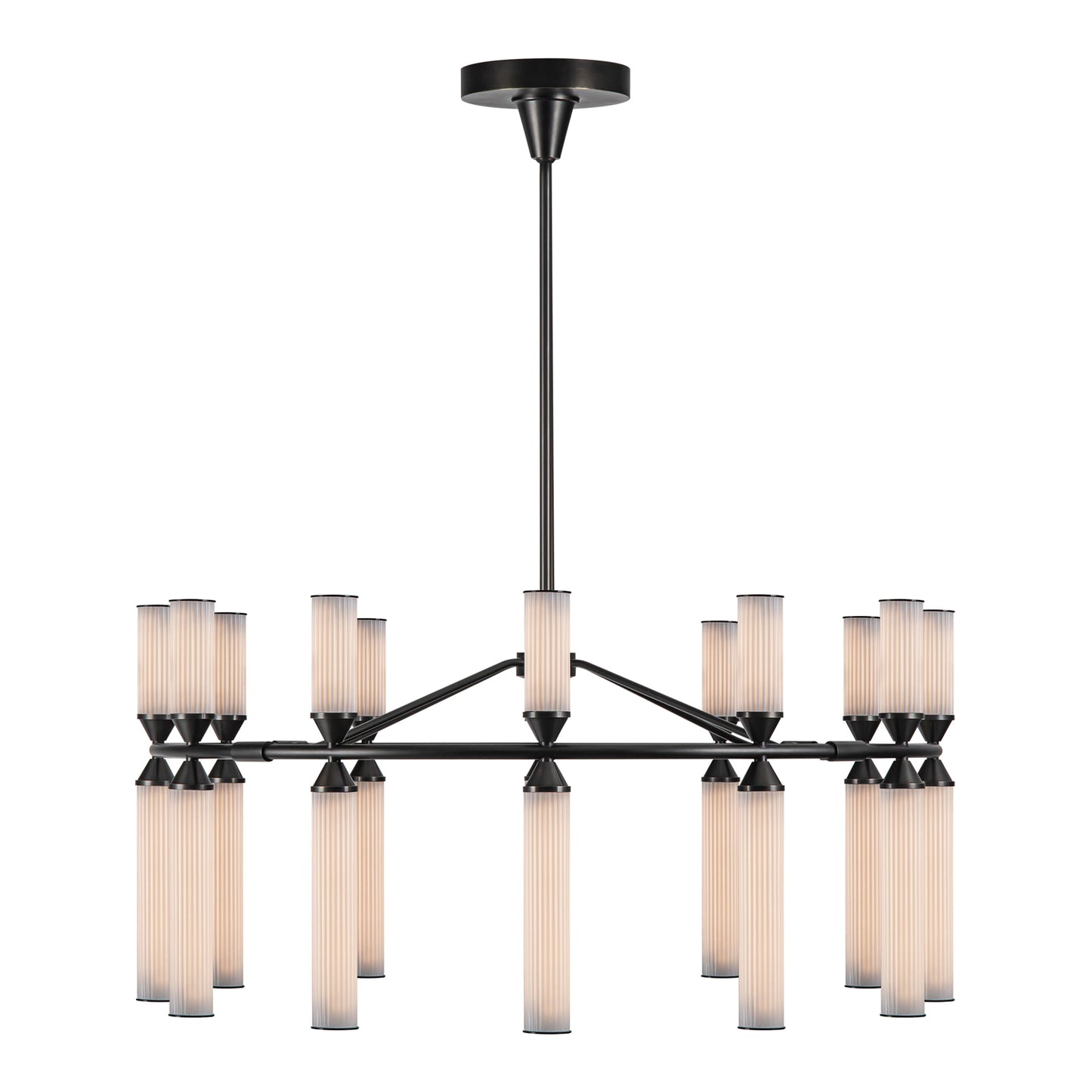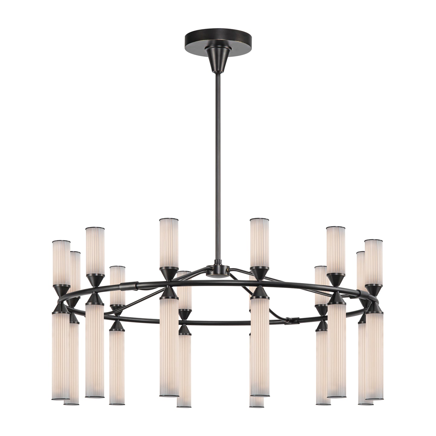 The Edwin harkens back to a glamorous age of decadence. Art Deco inspired ribbed glass dances along strong frames to create a style that is truly timeless. Featuring unique integrated LED elements that give modern elegance to vintage sensibilities. Each piece inspires with a mixture of luxury textures and classic shapes.