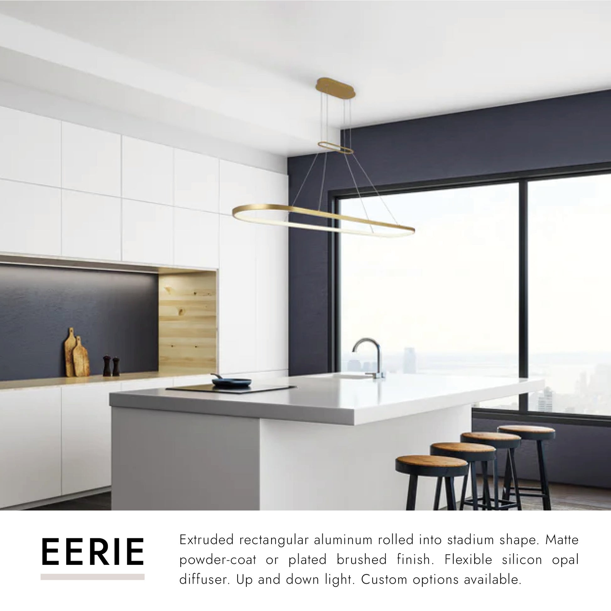 Extruded rectangular aluminum rolled into stadium shape. Matte powder-coat or plated brushed finish. Flexible silicon opal diffuser. Up and down light. Custom options available.