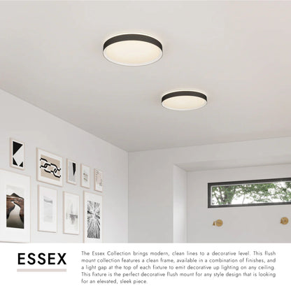 The Essex Collection brings modern, clean lines to a decorative level. This flush mount collection features a clean frame, available in a combination of Black, Gold, White and Walnut pattern, and a light gap at the top of each fixture to emit decorative up lighting on any ceiling. This fixture is the perfect decorative flush mount for any style design that is looking for an elevated, sleek piece.