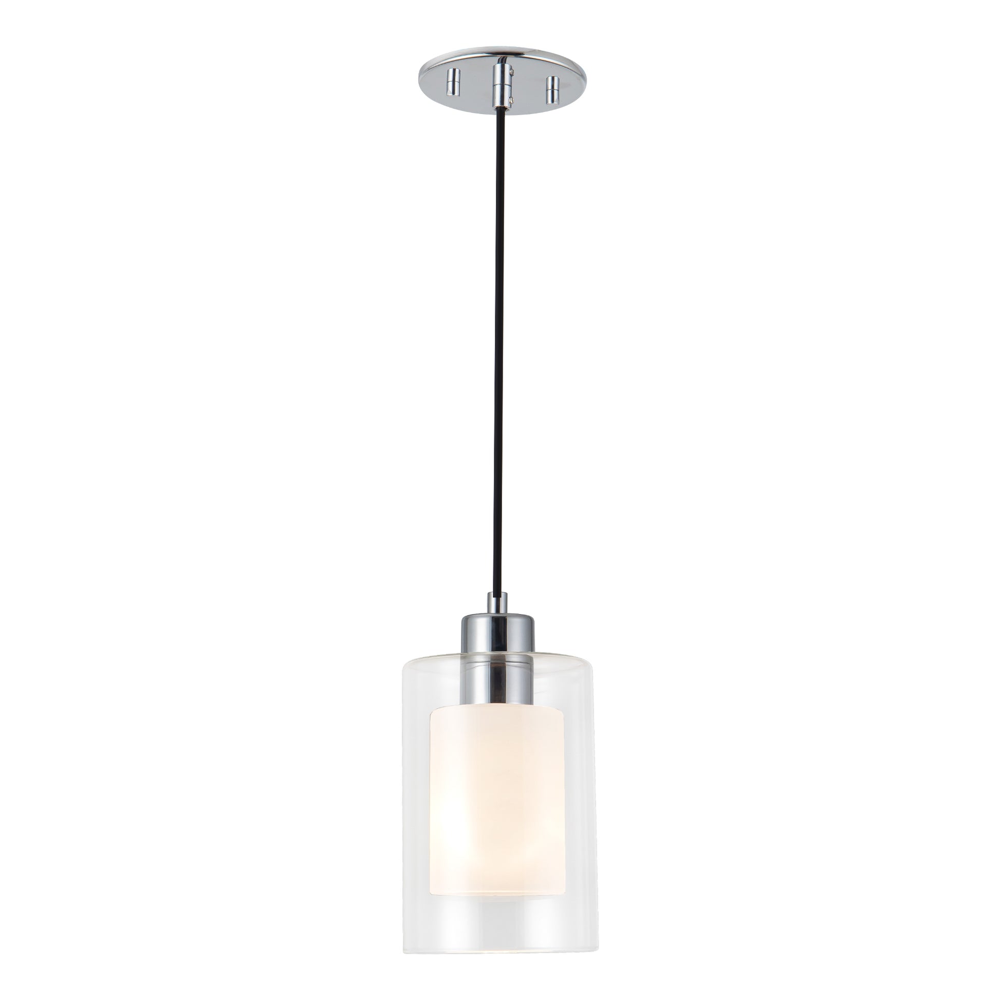 - Modern pendant light with clear outer diffuser and opal inner shade