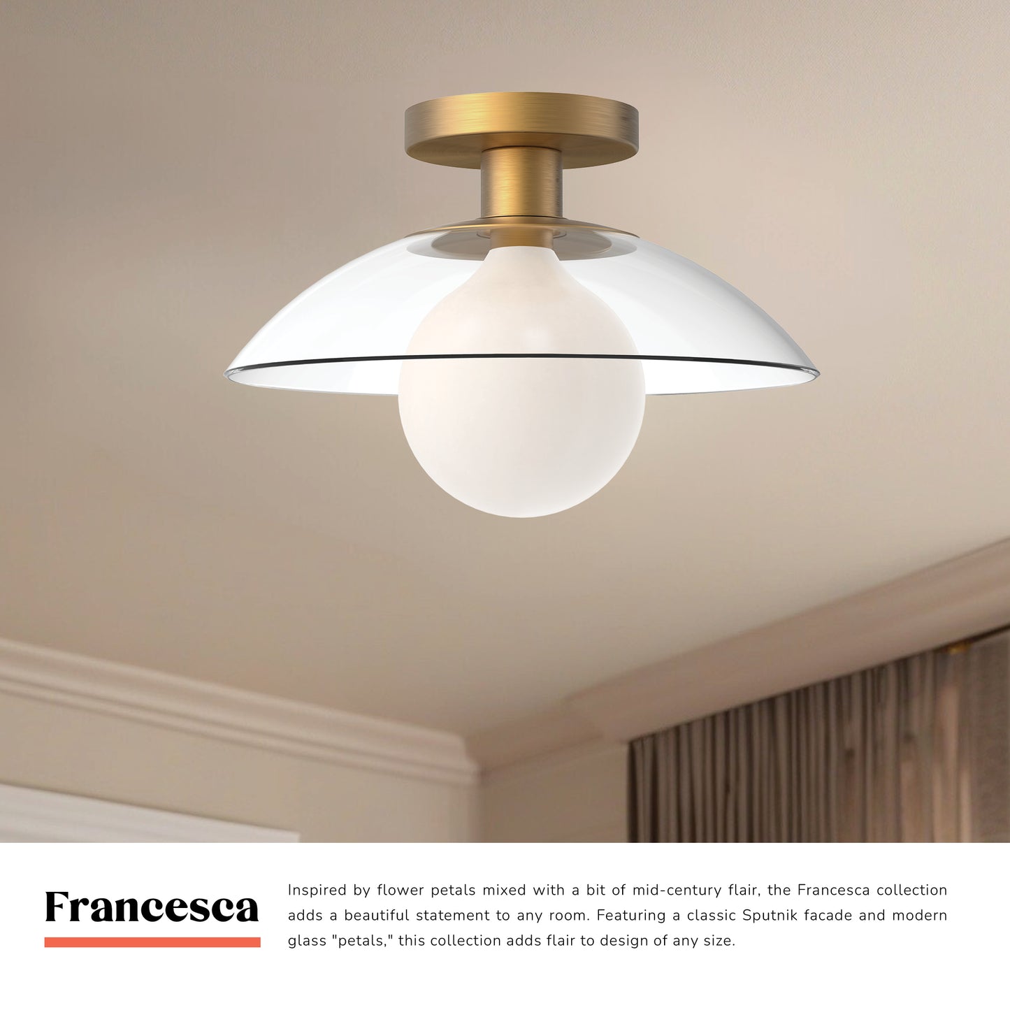 Inspired by flower petals mixed with a bit of mid-century flair, the Francesca collection adds a beautiful statement to any room. Featuring a classic Sputnik facade and modern glass "petals," this collection adds flair to design of any size.