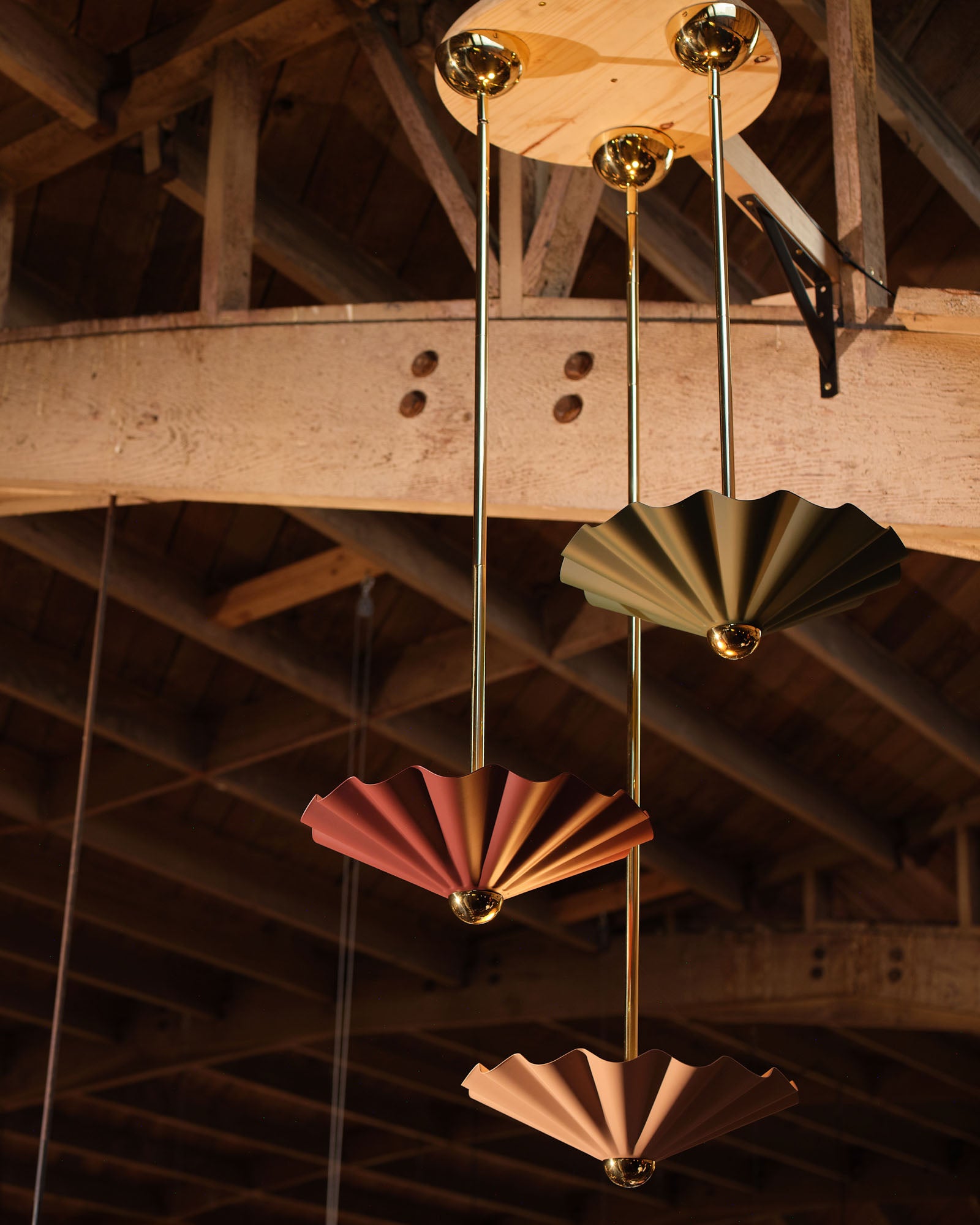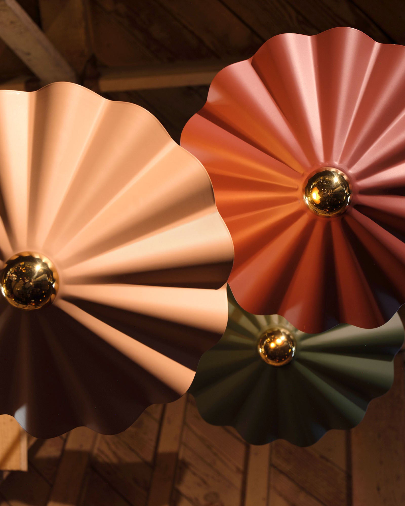 Inspired by the Tridacna gigas: the world’s largest clam and source of the most extraordinary pearls. This collection celebrates the beauty of rarity and reveal. Oblong, pearl-like opal glass diffusers rest atop ruffled metal “shells,” painted in rich hues of burgundy, pine green, and dusty peach. The forms echo the ancient shell game, a dance of deception and discovery, where anticipation meets allure. Select pieces, including the table lamp, floor lamp, and wall sconce, incorporate deep walnut wood, adding warmth, texture, and timeless sophistication to the collection’s sculptural elegance.