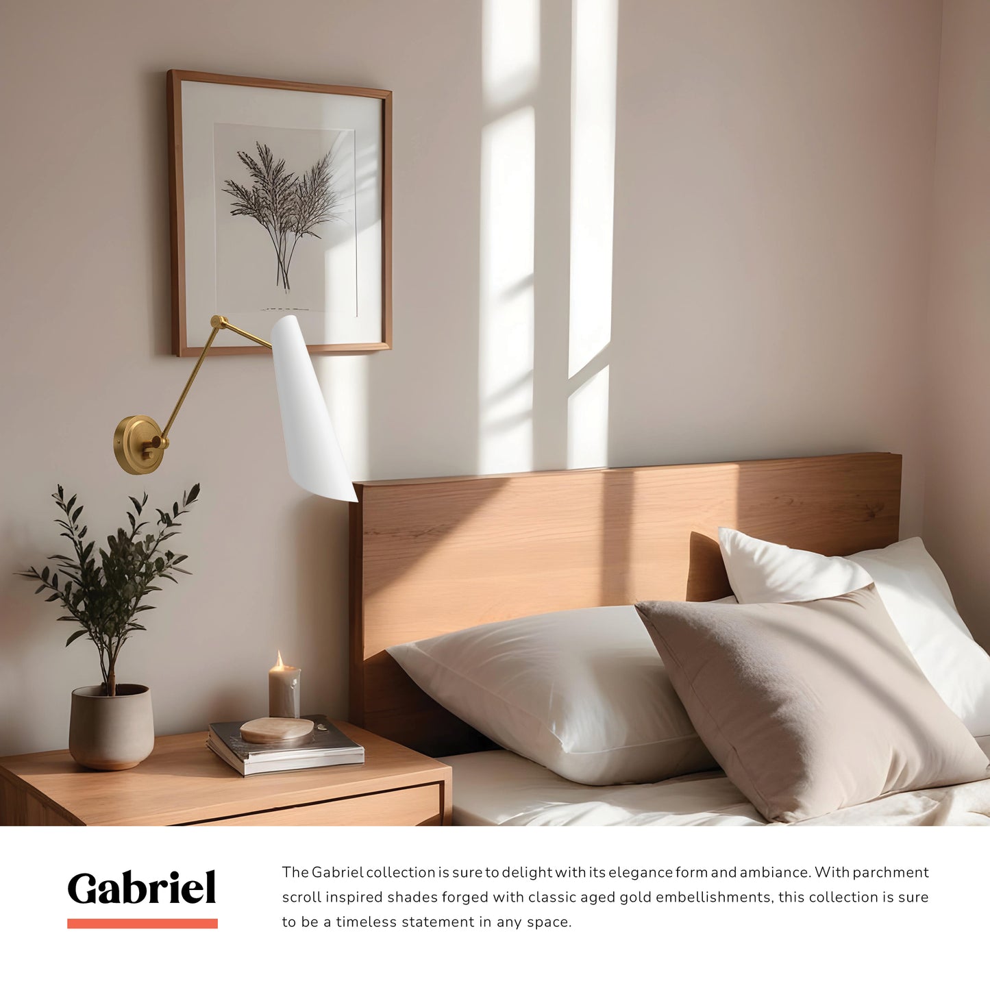 The Gabriel collection is sure to delight with its elegance form and ambiance. With parchment scroll inspired shades forged with classic aged gold embellishments, this collection is sure to be a timeless statement in any space.