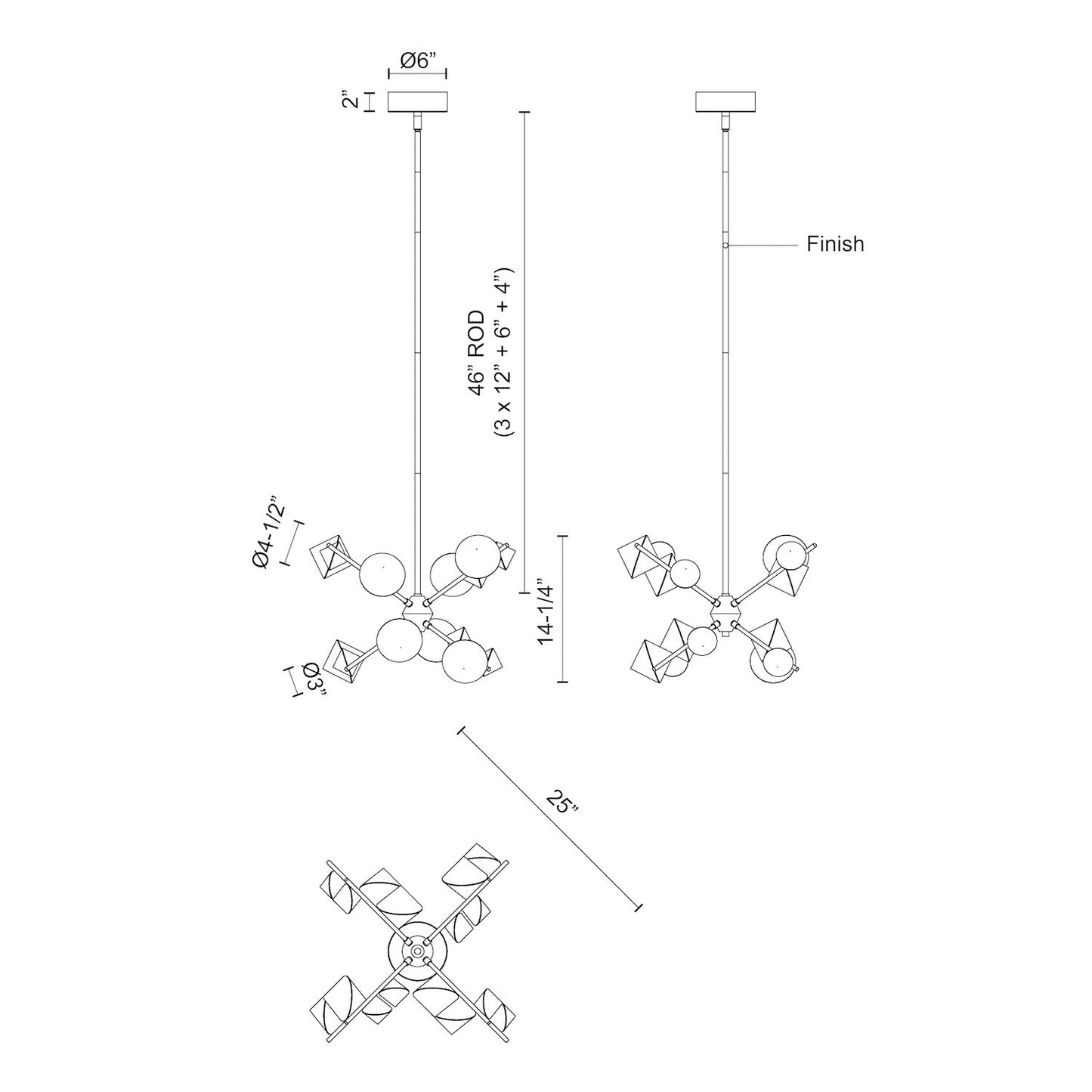 Gemstone shaped illuminations cluster around an architectural rod in a way that is enduring and awe-inspiring. Providing luxe and modern ambient lighting in any space, the Geode Collection is the jewellery of any space.