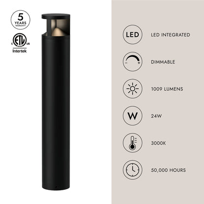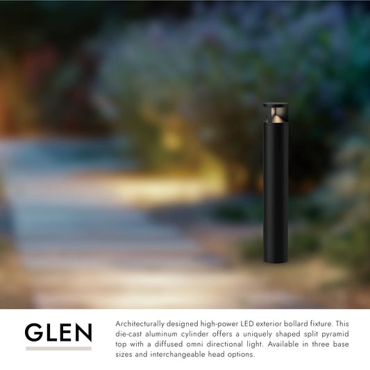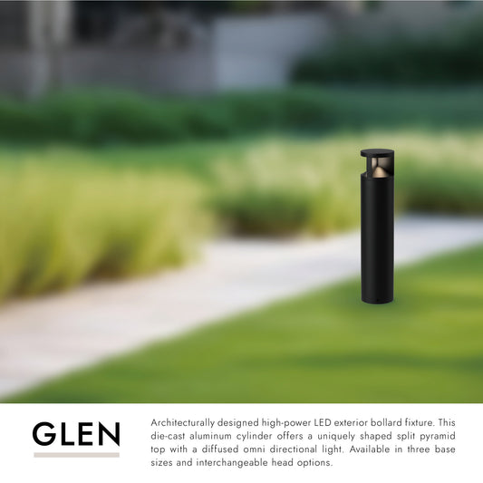 Architecturally designed high-power LED exterior bollard fixture. This die-cast aluminum cylinder offers a uniquely shaped split pyramid top with a diffused omni directional light. Available in three base sizes and interchangeable head options