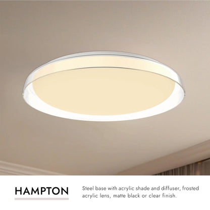 Steel base with acrylic shade and diffuser, frosted acrylic lens, matte black or clear finish