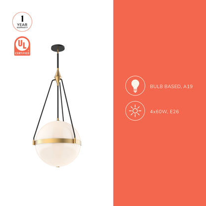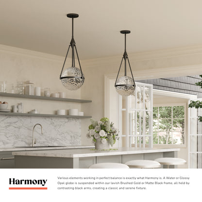 Various elements working in perfect balance is exactly what Harmony is. A Water or Glossy Opal globe is suspended within our lavish Brushed Gold or Matte Black frame, all held by contrasting black arms, creating a classic and serene fixture