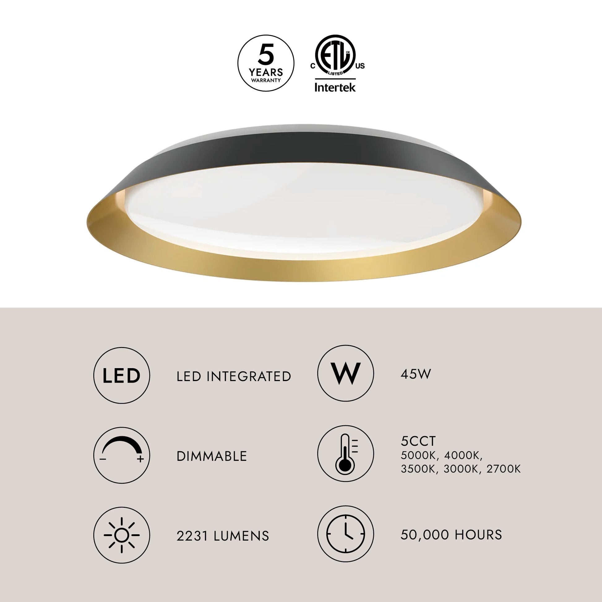 - Integrated LED with Selectable Color Temperature Options