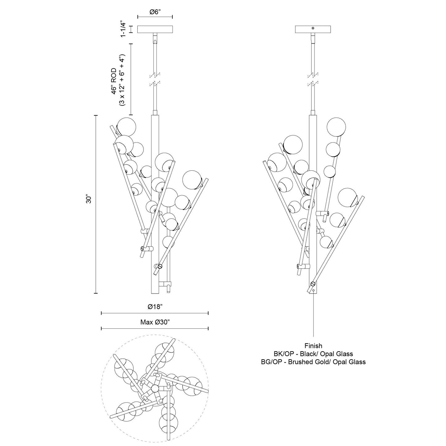 Cypress’s shape expands and contracts to suit your space’s needs. Each “branch” of the Cypress collection adjusts to lengthen or collapse, creating a customized look. Atop each arm sits three growing Matte Opal glass globes stretching outwards to create depth and emphasis.