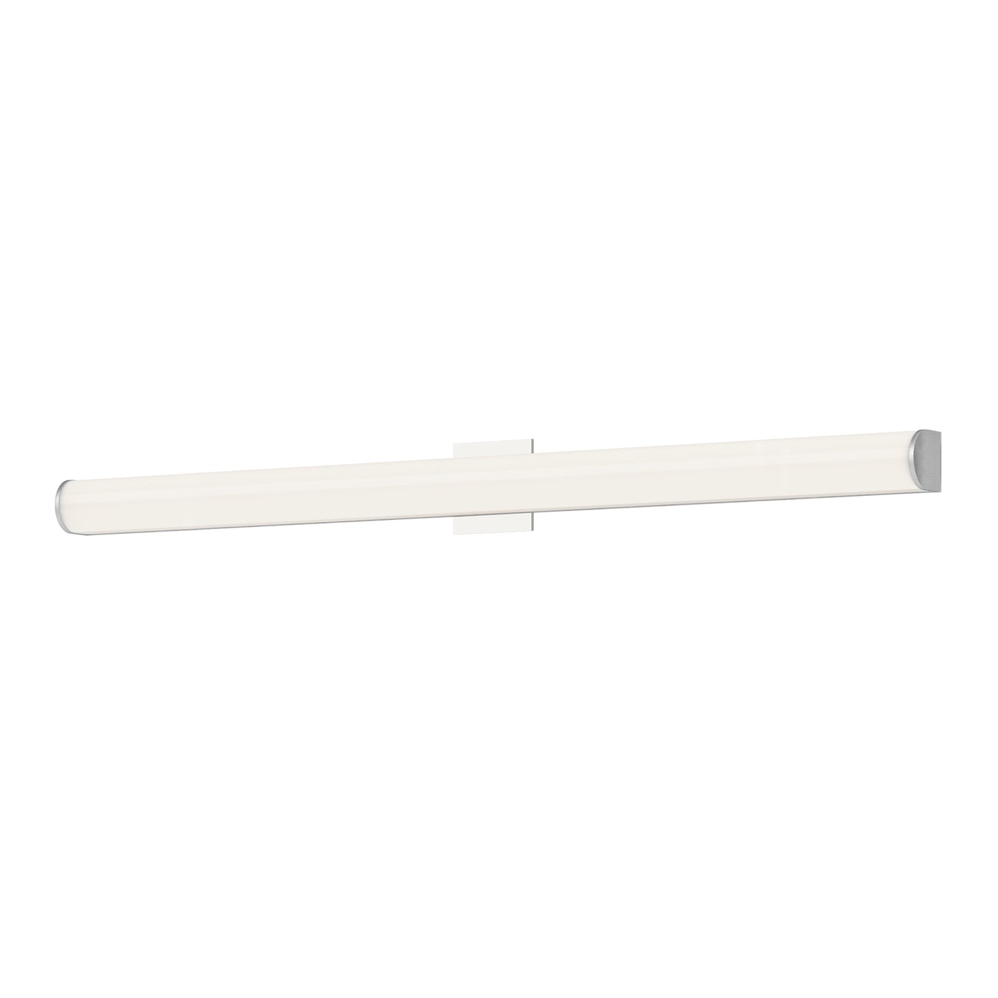An extruded rounded diffuser surrounds the LED source of the geometric vanity fixture and gently spreads light. Enclosed at the ends by two thick caps the design is characterized by minimal details and clever features. During installation the lamp assembly may slide on the mounting track to allow for ideal positioning. Adding to the versatile function are the multiple fixture lengths and mounting orientations. Optional installation without backplate for smaller junction boxes.