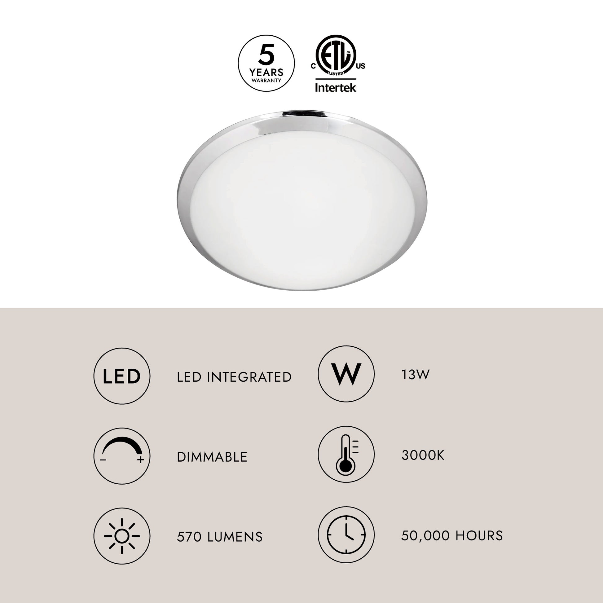 Single lamp LED flush mount ceiling fixture with round white opal glass. Metal details available in black, brushed nickel, chrome and brushed gold finish, and is equipped with our powerful 120V AC LED technology