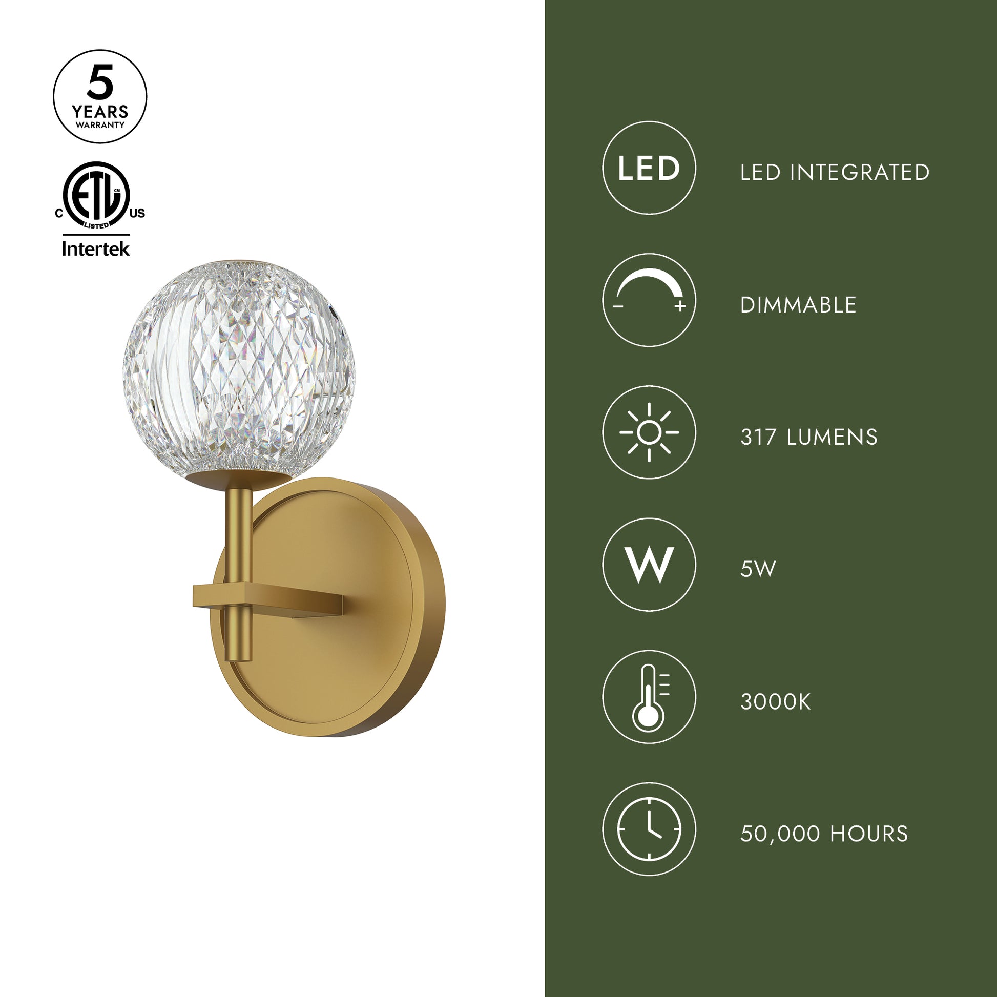 | Fixture Dimensions | W5" x H8-5/8" x E5-3/8" |