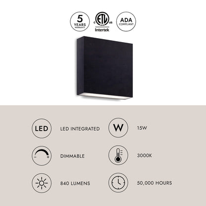 This All-terior minimalist sleek cast aluminum wall sconce is a beautiful addition to any indoor or outdoor room. Rectangular in size with smooth sleek sharp corners. Installed at the top and bottom of the fixture is our powerful LED technology, fully dimmable, covered by premium frosted optical lenses which omits the light from the fixture evenly against the wall.