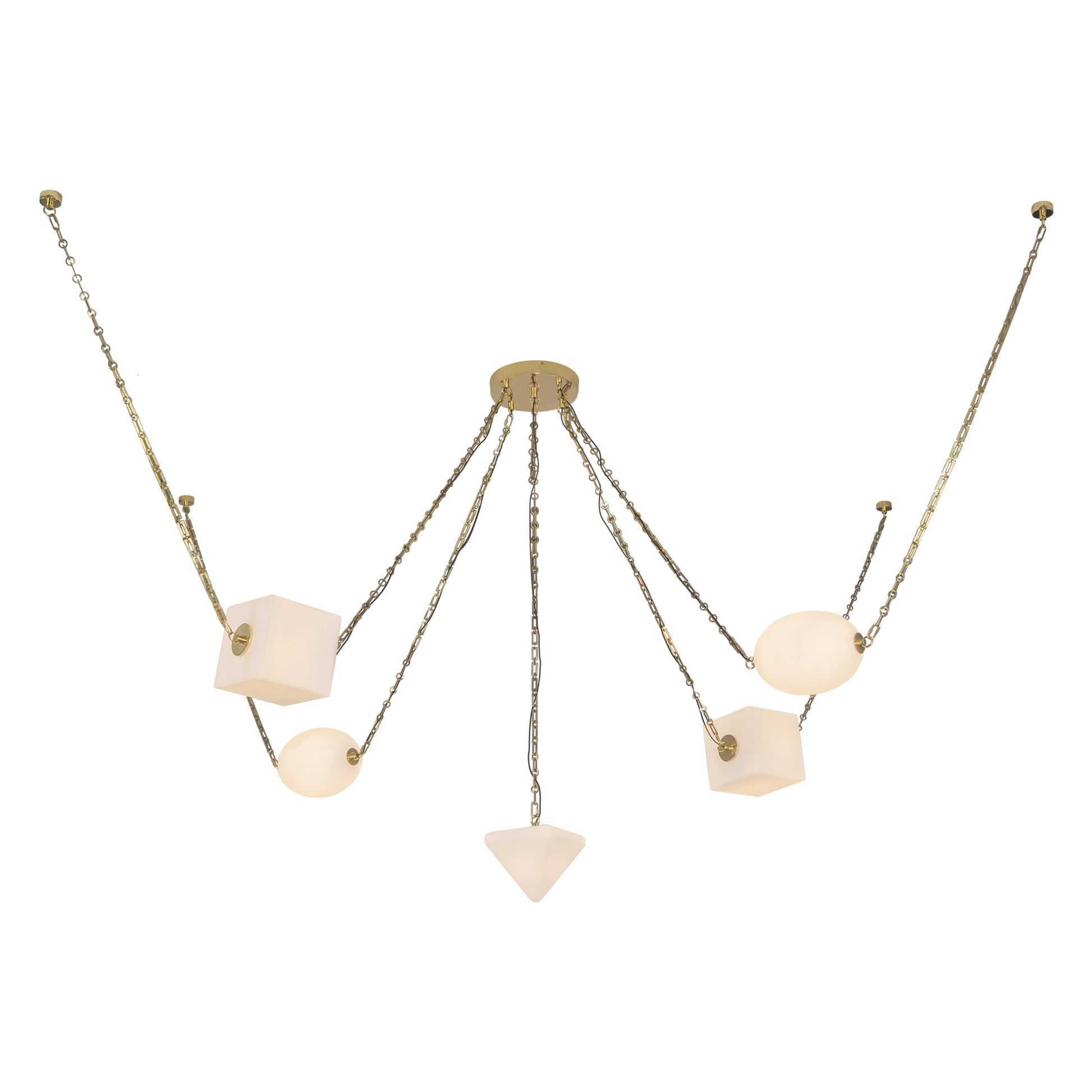 Inspired by salt, the mineral that shaped civilizations and sustained life, this collection celebrates the elemental beauty of the earth’s raw materials. Natural alabaster stone and uniquely molded mineral glass diffuse light with a soft, textural glow, reminiscent of beach glass and the dust of the sea. Sculptural forms in triangles, ovals, and squares are framed by patina brass or urban bronze, grounding the ethereal with structure and strength.