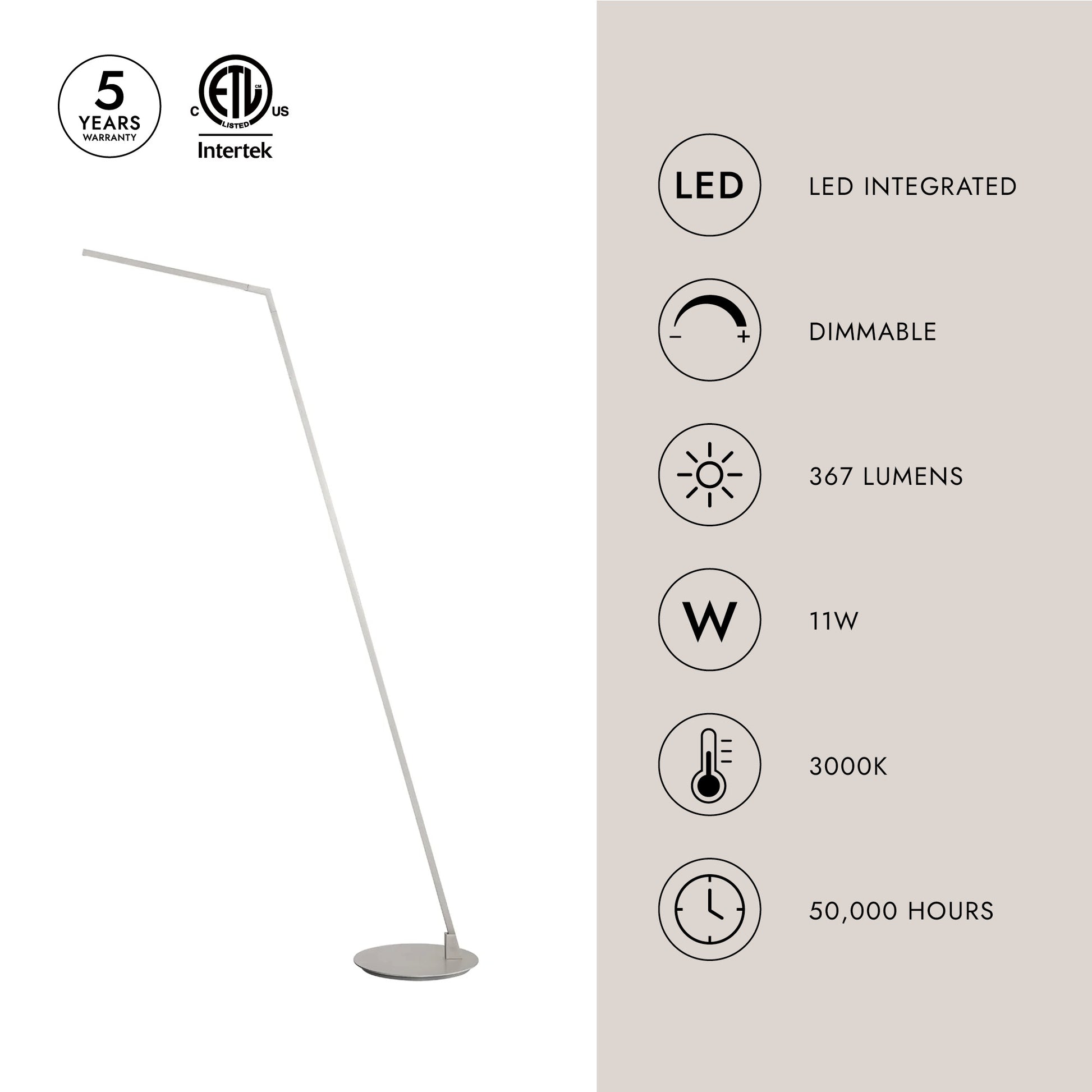 - Integrated LED with 3000K Warm White Color Temperature