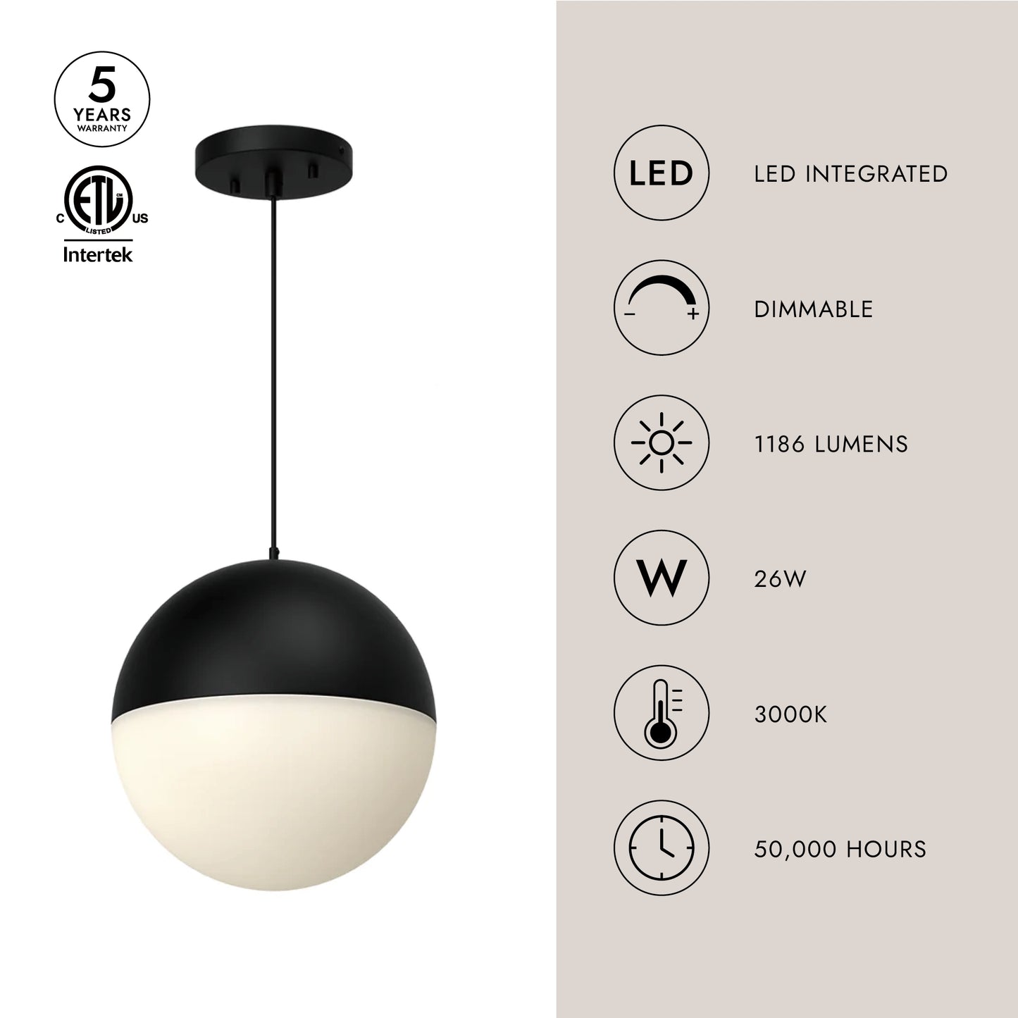 - Integrated LED with 3000K Warm White Color Temperature