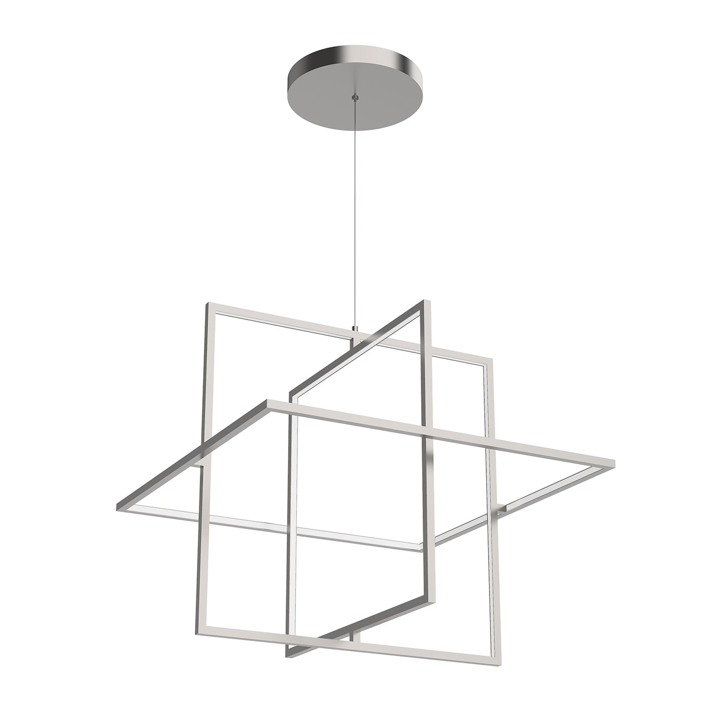 Mondrian series is composed from numerous rectilinear frames of light. The illuminated borders surrounding an open central void create an illusion of levitation. The airy design and negative space allow the fixture to visually blend into the environment. High-quality finish and simple forms coalesce in the elegant new product.