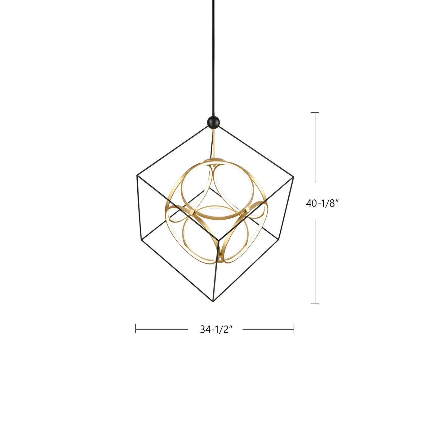 Interconnecting aluminum rings within steel frame cube. Finely textured metallic and satin powder-coat finishes. Opal silicon circular diffusers. Up and down light. Custom options available.