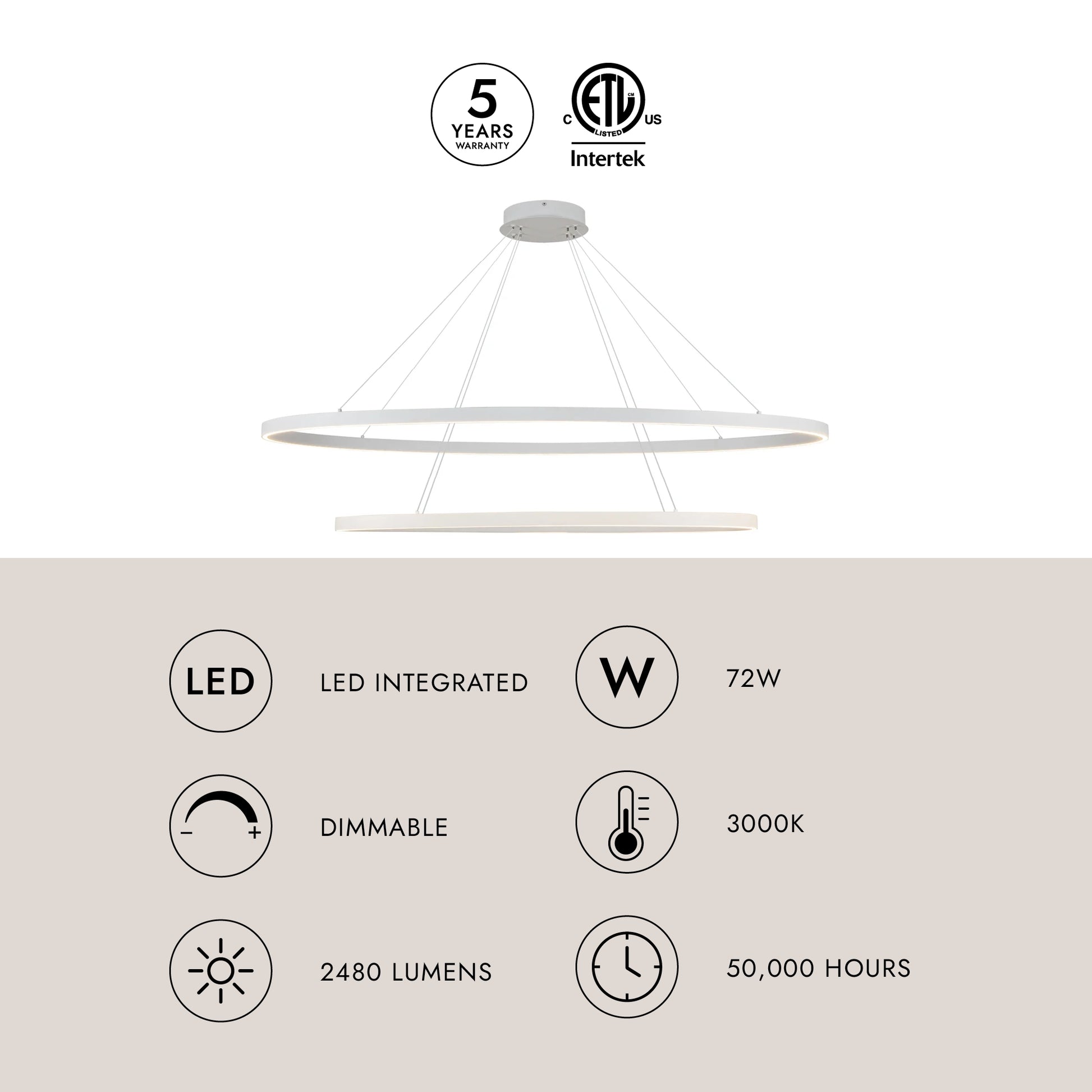 - Integrated LED with 3000K Warm White Color Temperature