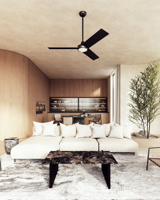 The Owens Collection is a masterful combination of form and function. With sleek,minimal fan blades and a stunning triangular LED diffuser, this collection is timeless andcan match the style of any space. Fan is remote controlled and features six speeds and dimmable LED illumination.
