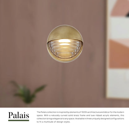 The Palais collection is inspired by elements of 1920’s architecture and décor for the modern space. With a naturally curved solid brass frame and luxe ribbed glass elements, this collection brings elegance to any space. Available in three uniquely designed configurations to fit a multitude of design styles.