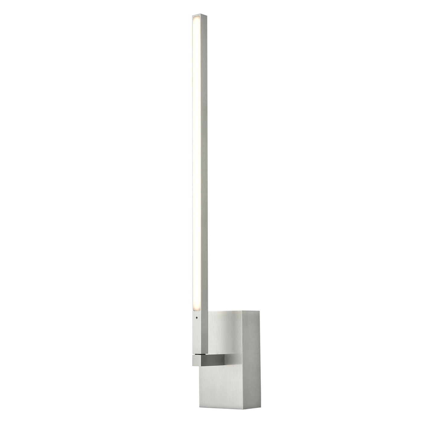 Square profile linear aluminum with rectangular wall mount. Inset opal polymeric diffuser. Finely textured plate or powder-coated finish. Wall emitting light with rotational adjustment.