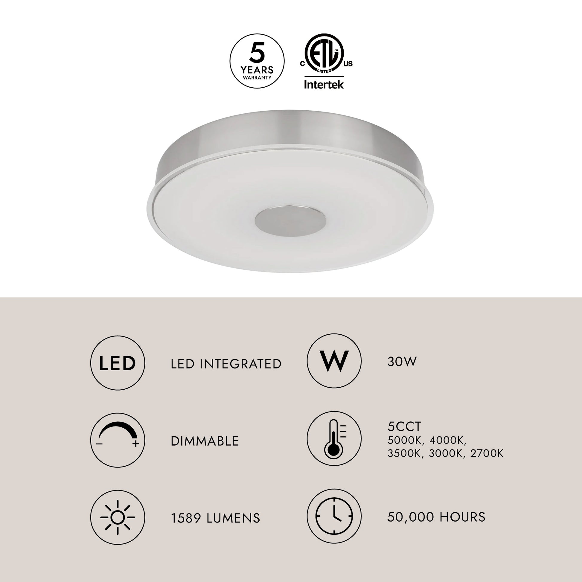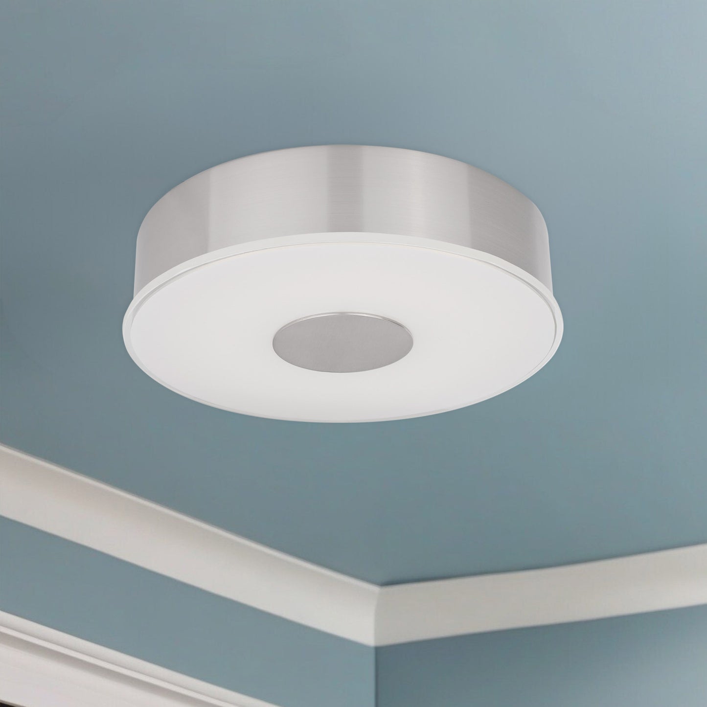 Clean sophisticated design with perfect aspect for any room. This LED flush mount design includes fine brushed nickel or black metal finish, round frosted glass with crystal clear edges around the trim of glass and equipped with our powerful 120V AC LED technology. May be mounted on the ceiling or wall locations, available in three sizes see series for more information.