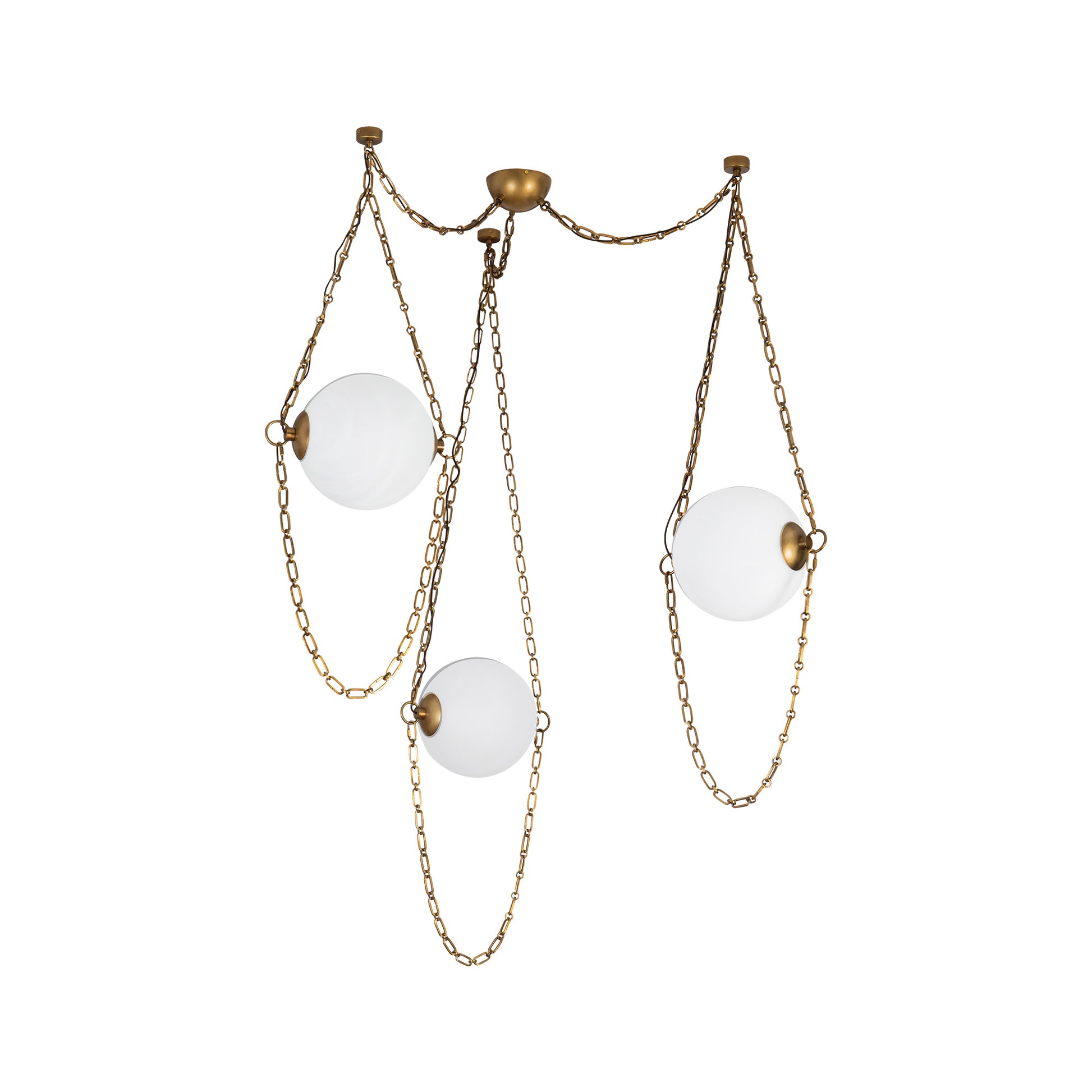 Drape your space in elegance with Petra, a jewelry-inspired lighting collection that swags shimmering custom chains around artisan glass orbs. Illuminated by integrated LED, Petra blends vintage charm with modern innovation—offering a radiant, timeless glow that’s as stunning as it is functional.