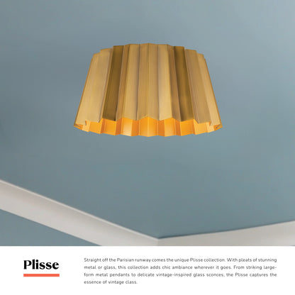 Straight off the Parisian runway comes the unique Plisse collection. With pleats of stunning metal or glass, this collection adds chic ambiance wherever it goes. From striking large-form metal pendants to delicate vintage-inspired glass sconces, the Plisse captures the essence of vintage class.