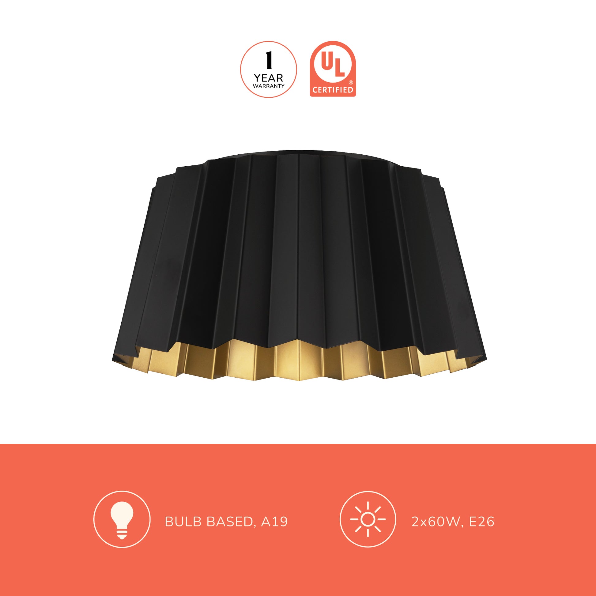 - 60W E26 or equivalent bulb required, not included