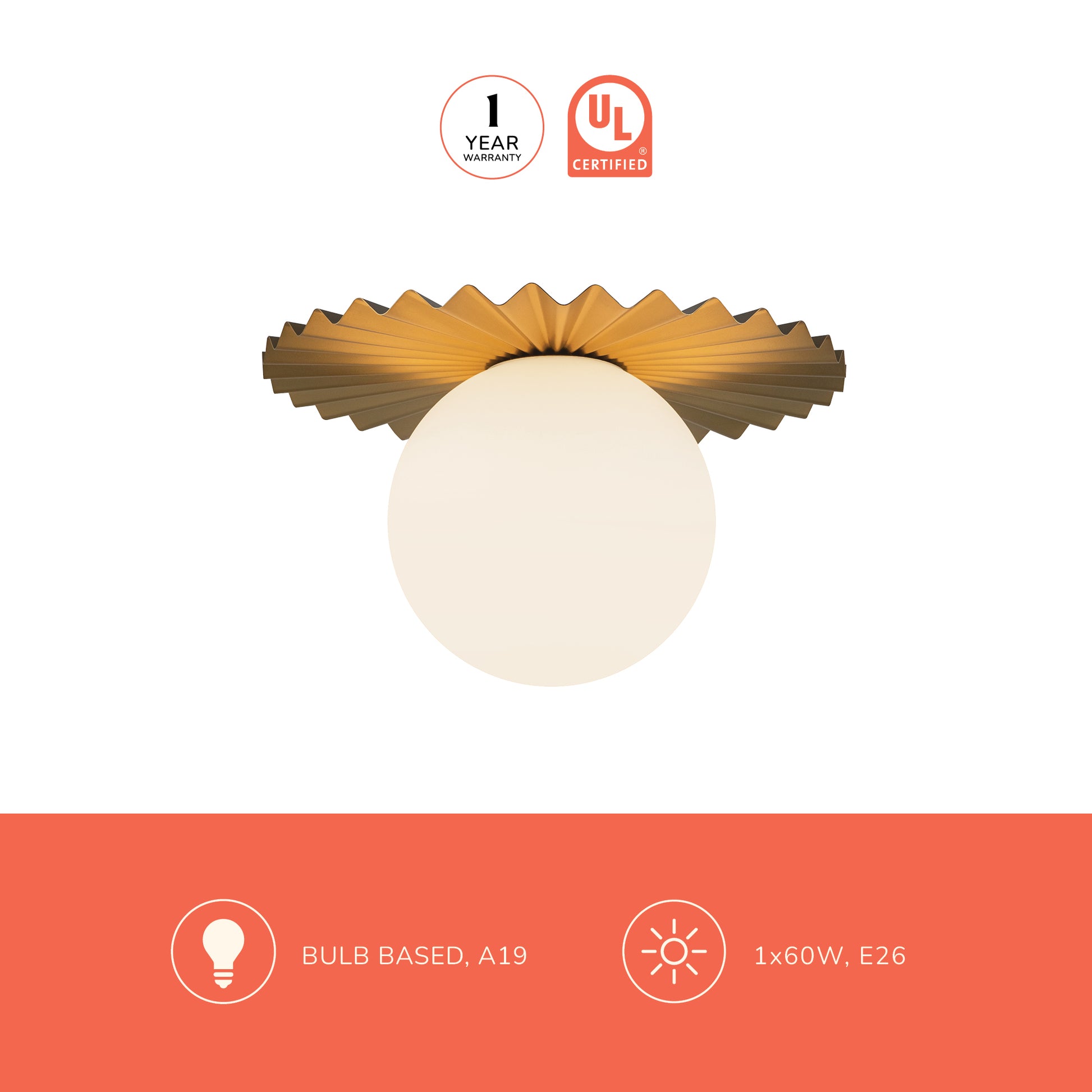 - 60W E26 or equivalent bulb required, not included