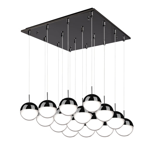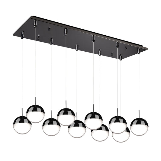 A timeless spherical geometry is inherent to the Pluto pendant. A split line at the globe equator separates complementary plated LED housing from translucent diffuser. The multiple color options make the fixture a perfect furnishing accent or, in multiples, a focal point.