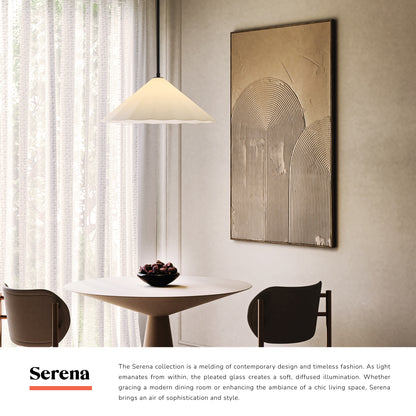 The Serena collection is a melding of contemporary design and timeless fashion. As light emanates from within, the pleated glass creates a soft, diffused illumination. Whether gracing a modern dining room or enhancing the ambiance of a chic living space, Serena brings an air of sophistication and style.